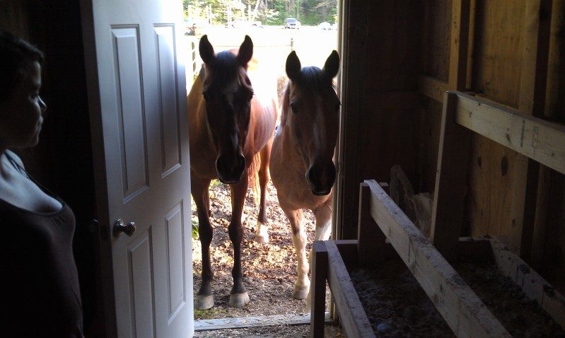 I walk to the back side of the barn, still calling for her and looking at the back gate for any sign of anything amiss (have some questionable neighbor kids, wouldn't put it past them) and I hear an answering snort/huff. Go back around to the barn thinking maybe I somehow just missed seeing 800 pounds of horse in the 14x14 area of the stall (