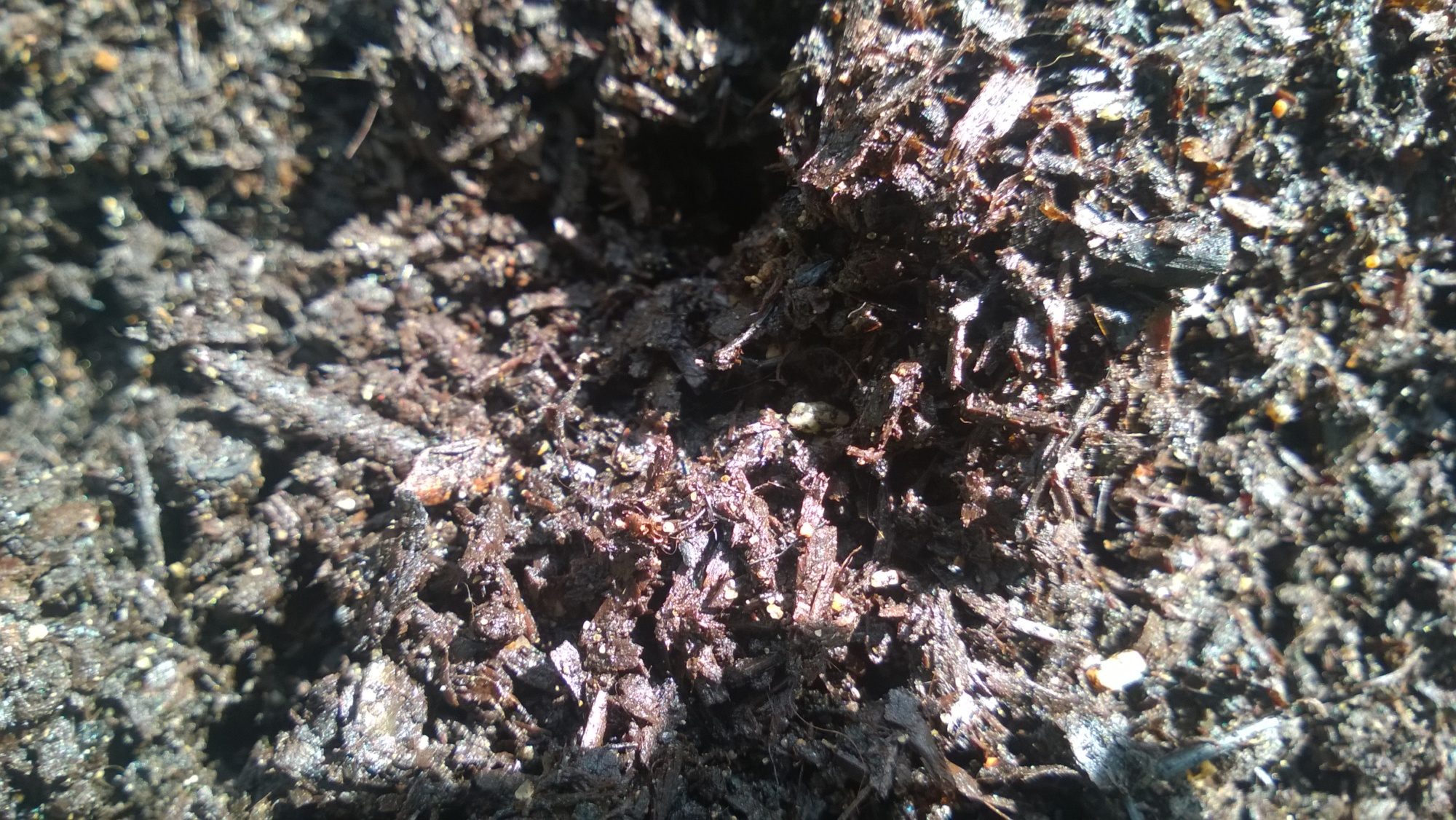 Close to the bottom the color was more brown than higher up. There was a lovely earthy smell to it. The very bottom had been inhabited by a colony of ants, since I hadn't been watering batch 1 as much anymore.