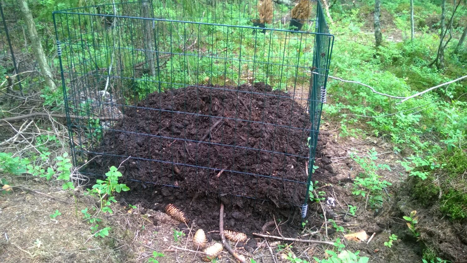 I emptied out 3 wheelbarrow loads of the stuff. Here it is in the wire cage.