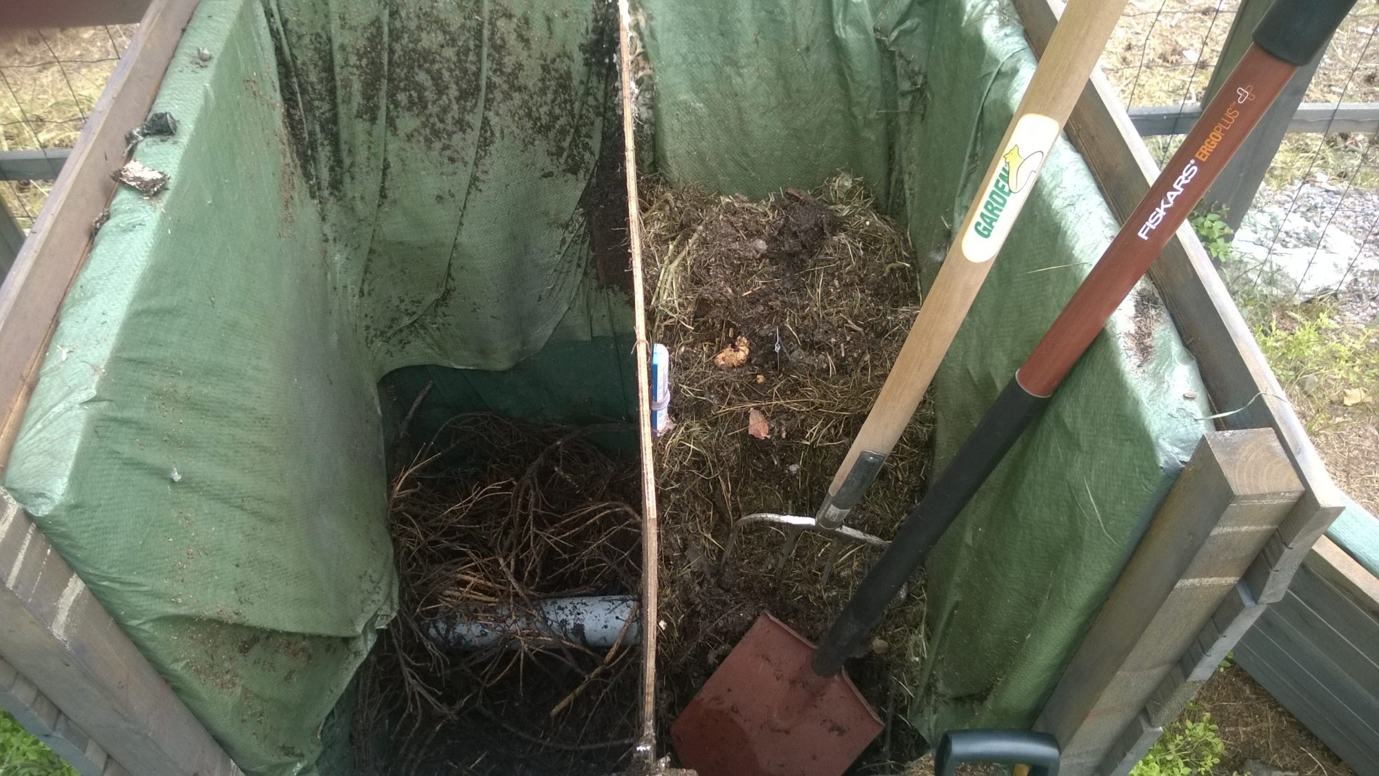 All of this heat is really messing with my ability to read what stage the compost is in again. This morning batch 1 had climbed back up to 47 deg C. Either batch 2 is heating it up, or then it's still cooking. The fact that it was +25 at 9 in the morning already doesn't help either. Now at 11, it's +28. The past week has been the hottest since 1961. Really freaky weather. Next week it should cool down a bit, so I should be able to get a more reliable picture of what's going on in the compost. I think I'll wait until then before emptying out batch 1. It would be nice to get it down to 30-35. Also, I think I may be a bit spoiled when it comes to these temperatures. I think most people would consider 47 deg C a pretty hot compost.