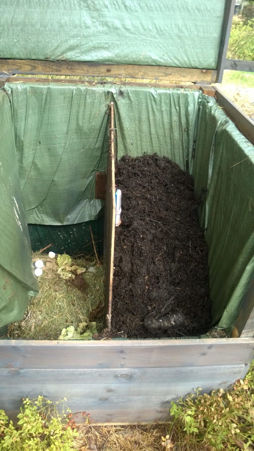 Batch two has not been putting out any heat for about a week, so I'm pretty sure it's about as cooked as it's going to be. I'm not entirely happy with the consistency, I think I'm going to have to separate soil out of the second potato tower better when we harvest it so that there is less inert matter in what I put into the compost. This time it did burn hot for a short while, but I didn't get the same long burn as I did with batch 1. Still, mixing this batch together with the stuff from batch 1 should make for perfectly good soil to plant in. Batch 3 has also gained a bit of bedding into it, so I went ahead and moistened it today. I'm hoping the heat from that will help dry batch 2 out to make it easier to move into storage. Still a long way to go before batch 3 is full, so I'm in no hurry to empty out batch 2, but it doesn't hurt to get the process started.