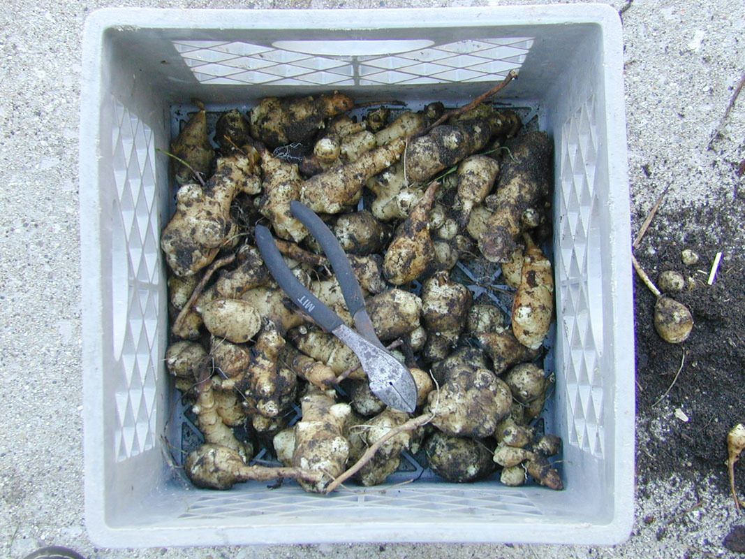 Here's a milk crate with the other rhizomes I gathered....with same side cutters for scale