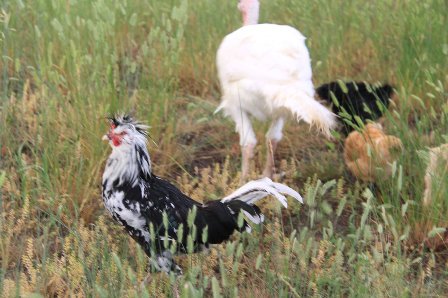 I think the bird is stunning, and I love how he darts through the grass. I've been considering keeping him around, but he's a bit aggressive with the hens (that are too young anyhow).