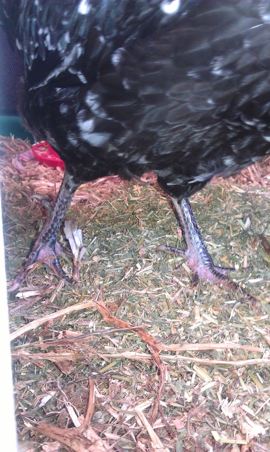 This bird has a beautiful crest and the indicators of some nice markings to be developed over time. I would chime in here that if you got the polish at the same breeder your Houdan is a cross with the Polish, as their legs are dark like you are seeing. Such a beautiful bird. I love Houdans.