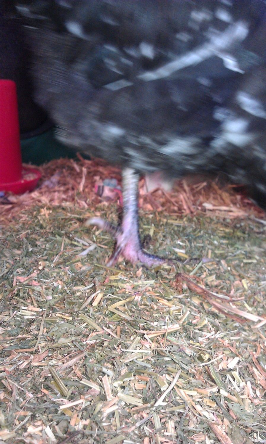 Note: He has lost weight from his fungal infection, and doesn't hang out with any of the chickens or eat until no one is looking. I'm going to have to put food on the deck, which is where he spends 50% of his day.