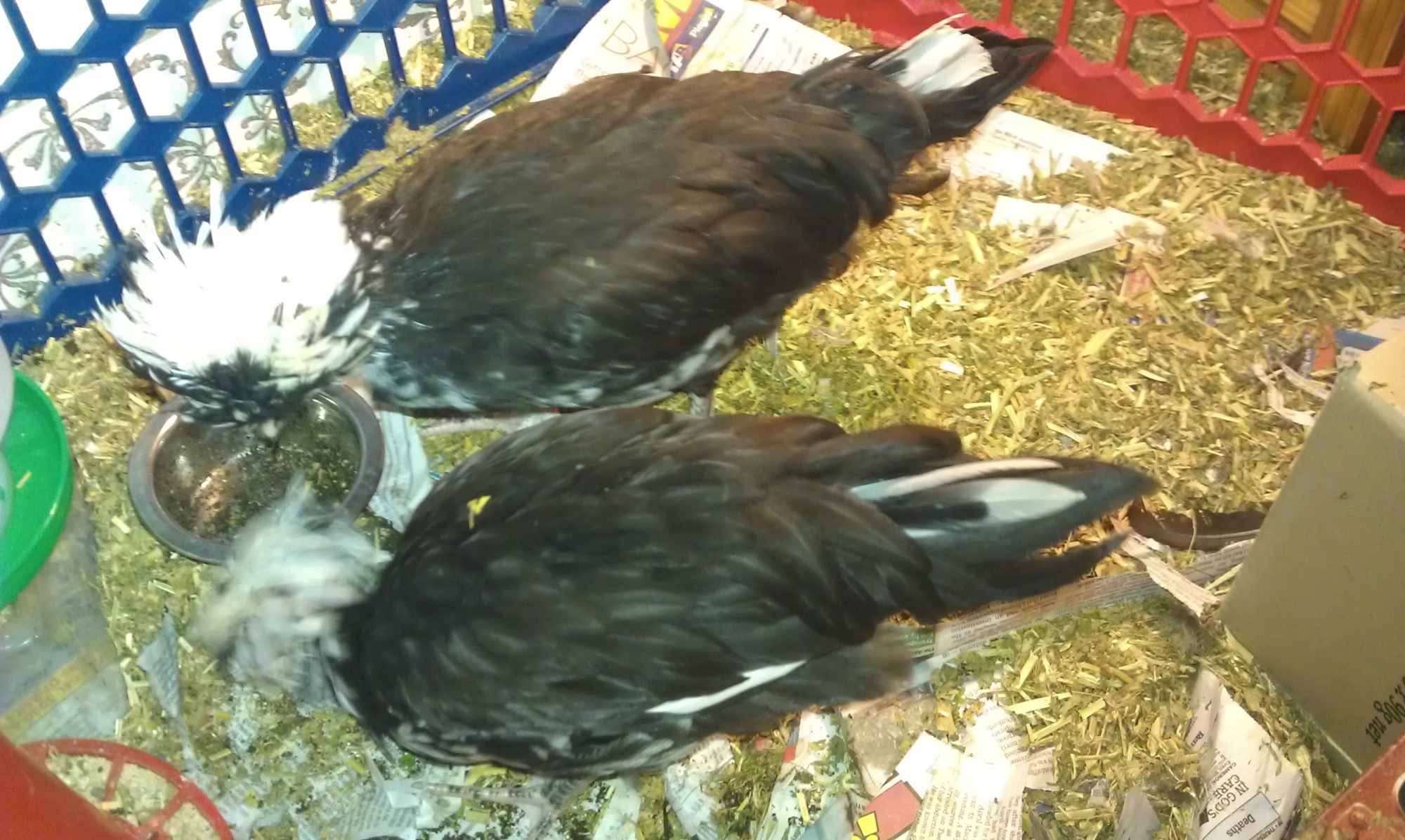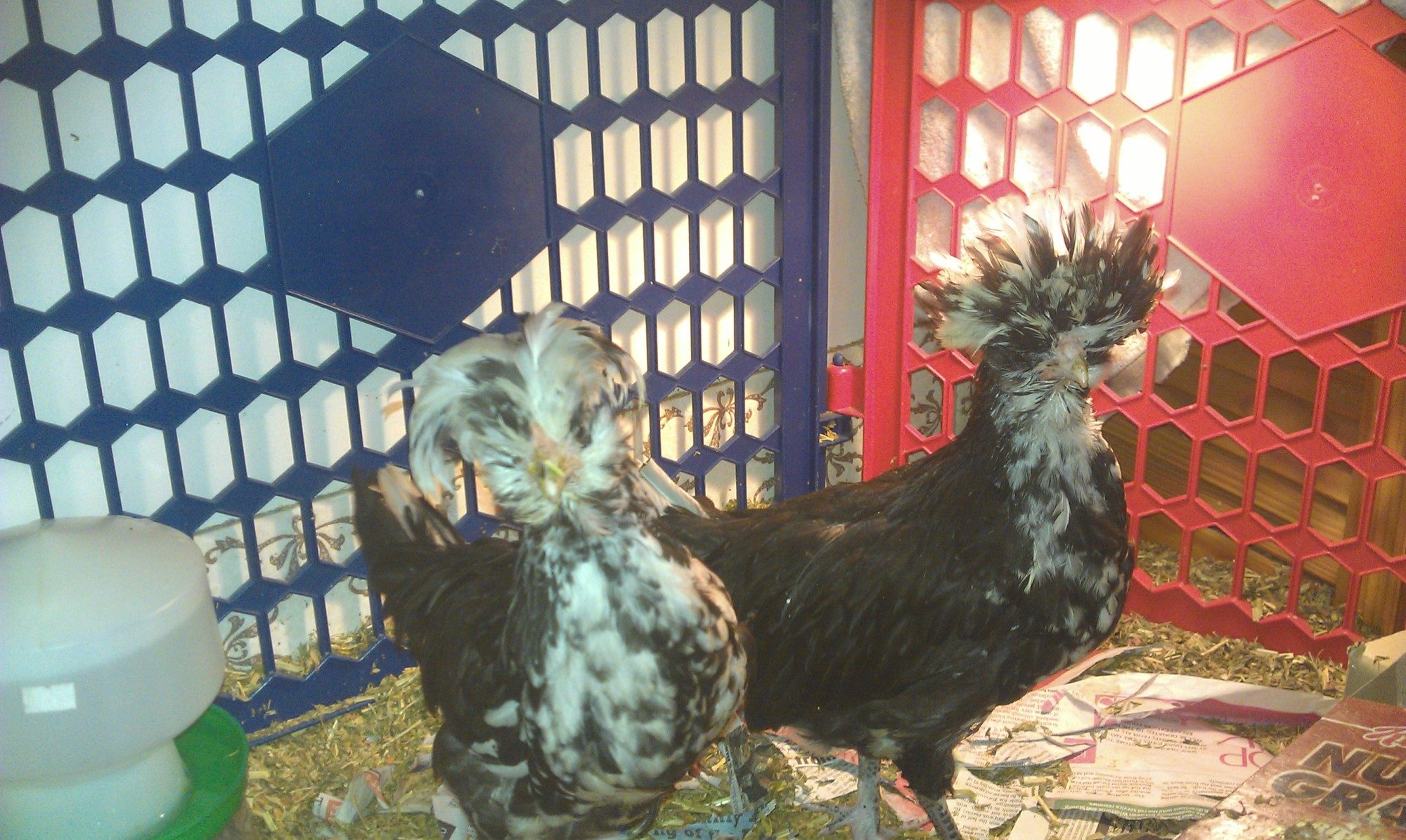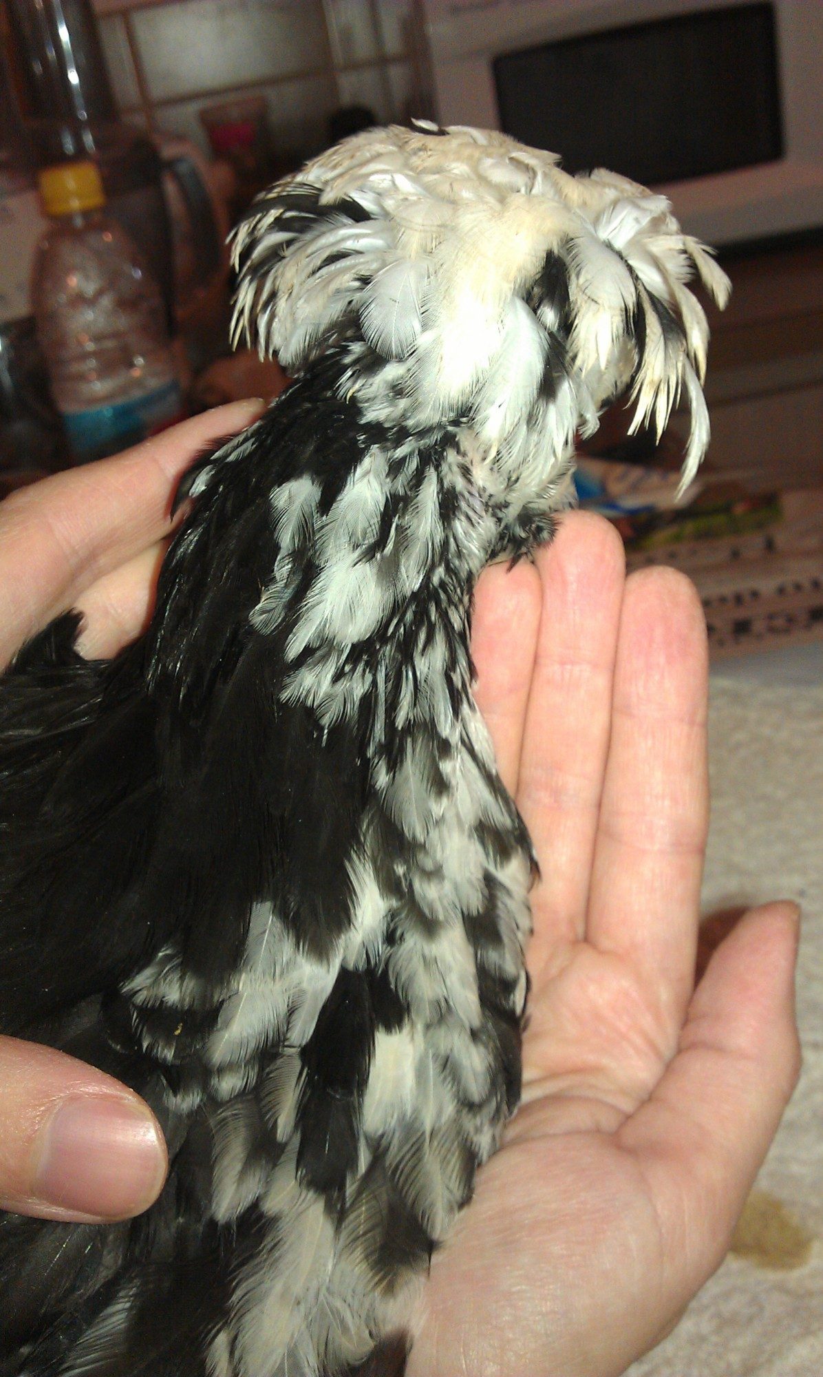 As for the domed skulls... it's hard to say. I put it down to Cackle occasionally adding birds which they buy at shows, so some have a slightly different genetic background. The largest, broadest crest in my 2011 group grew on a bird who had almost no visible dome as a chick, almost just a plain looking skull. Some of the most noticable domes, the narrow little mohawk shaped ones, give a very sparse, "Ye Olde Houdan" style crest: