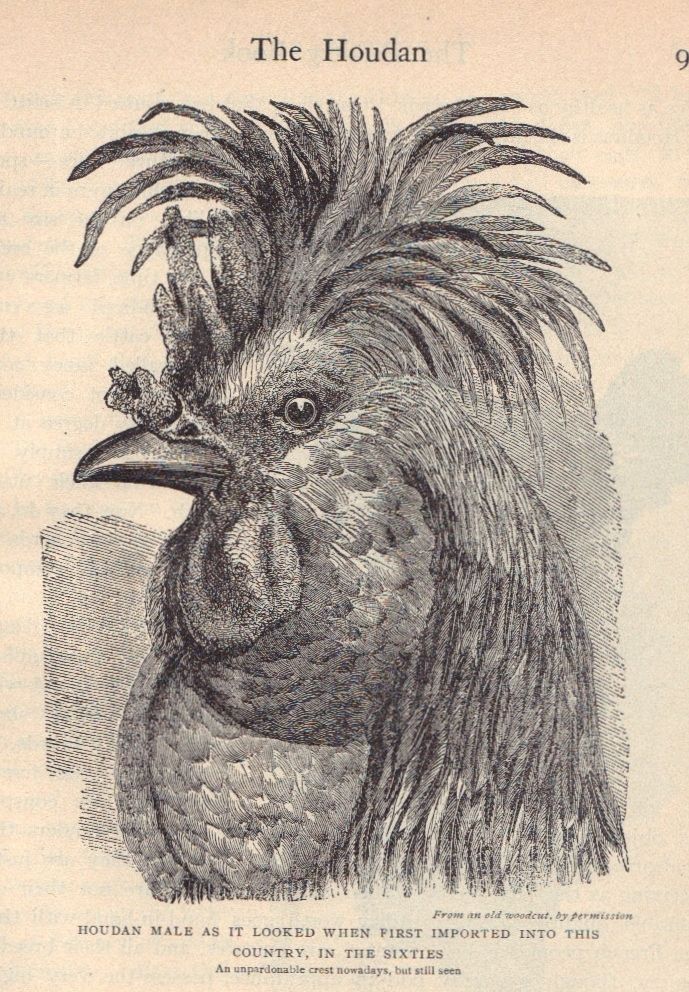 1. Most importantly - there is NO evidence to suggest that the Houdan arose out of a Dorking cross. This idea sprung up somewhere around 1890 - 1900 after people had gotten used to the idea of a finite number of chicken breeds, each with distinct traits. But there is nothing to back it up, and all the Houdan traits can be accounted for without looking outside France. (There are a lot of French regional breeds. For example the Gournay is another mottled breed, there was an article in Backyard Poultry magazine this spring).
