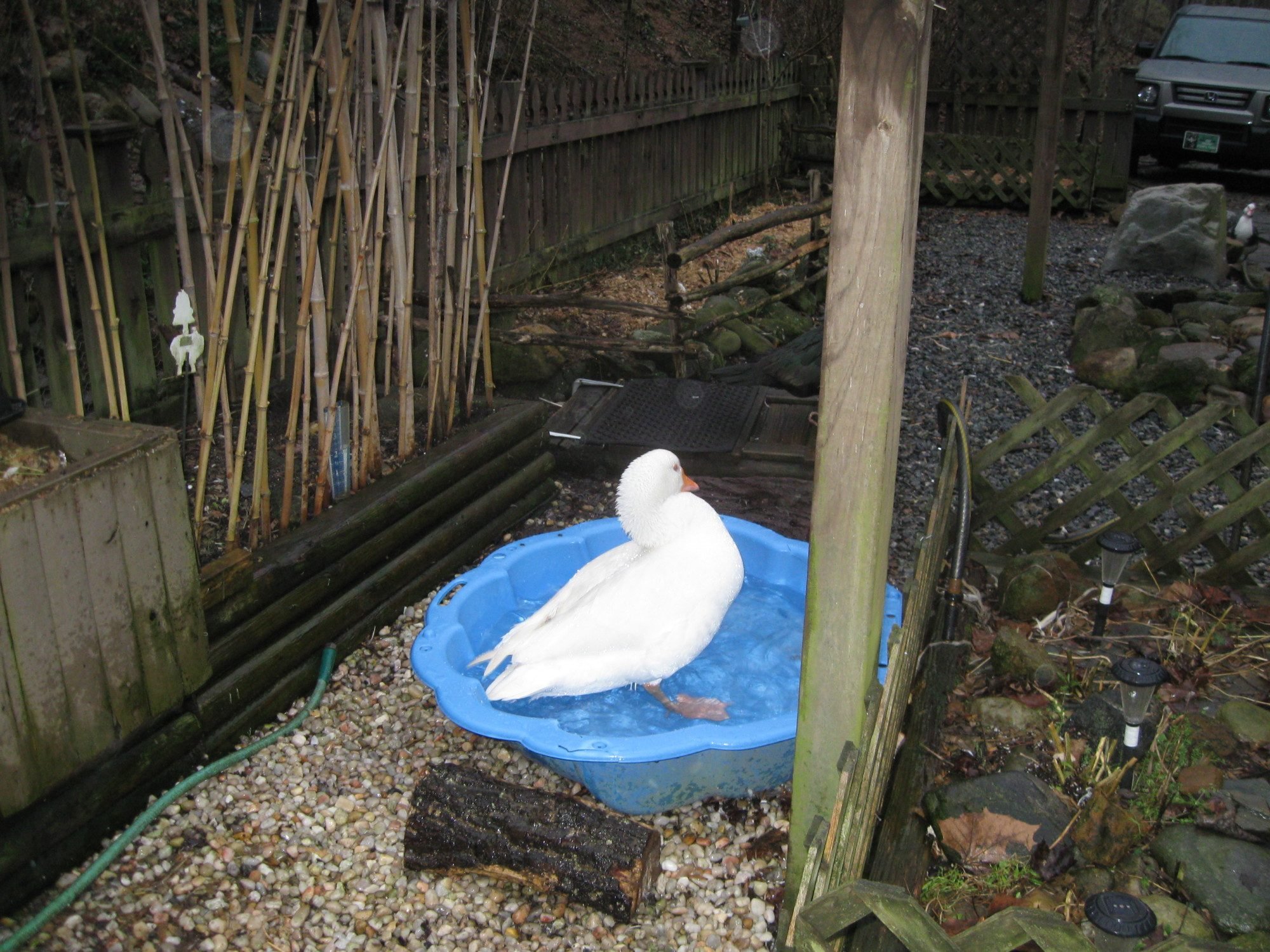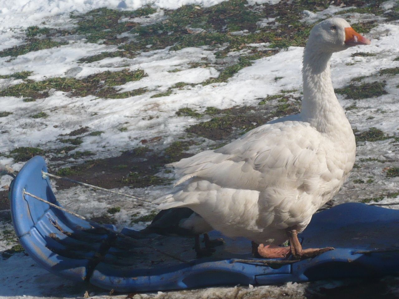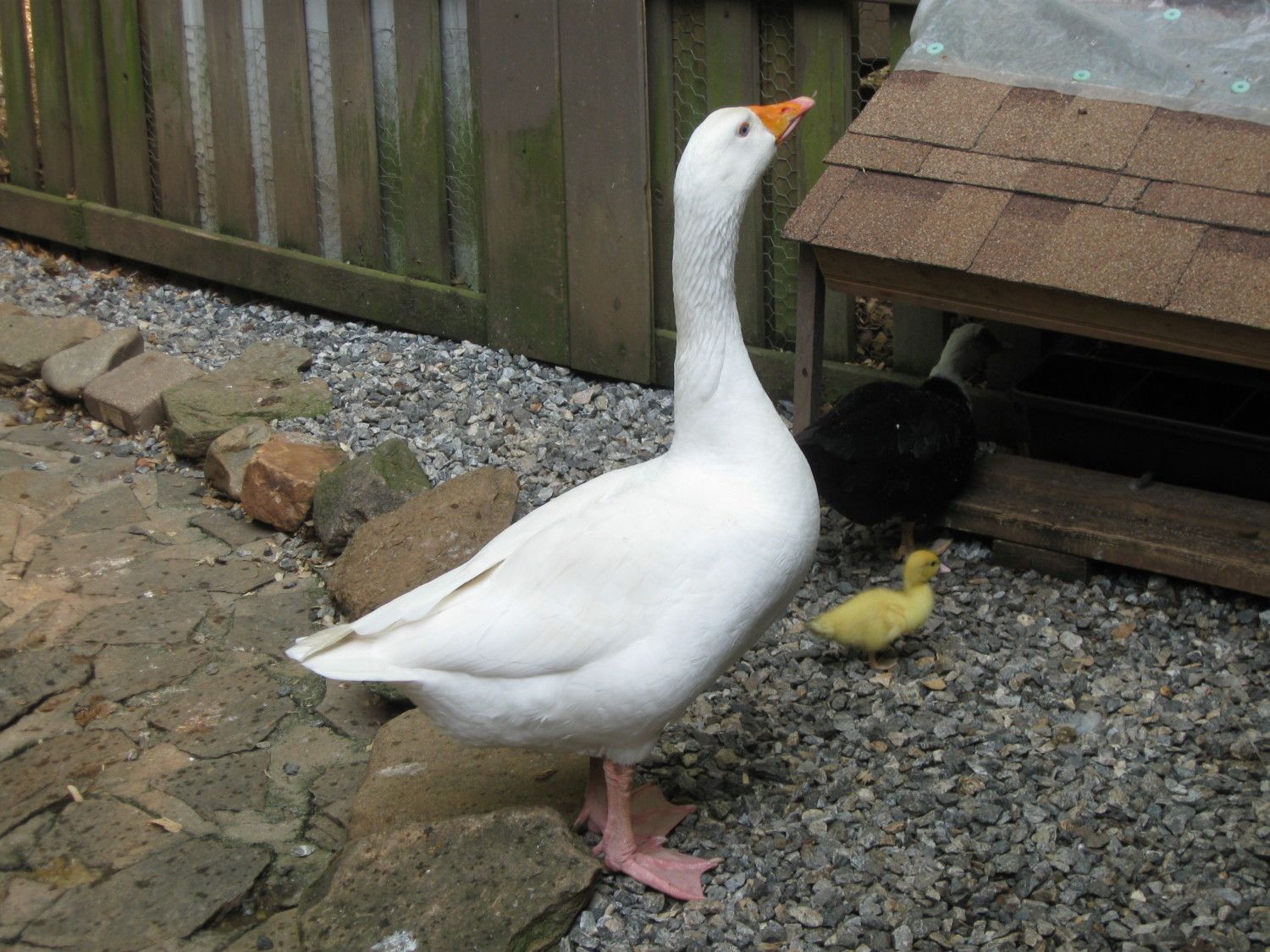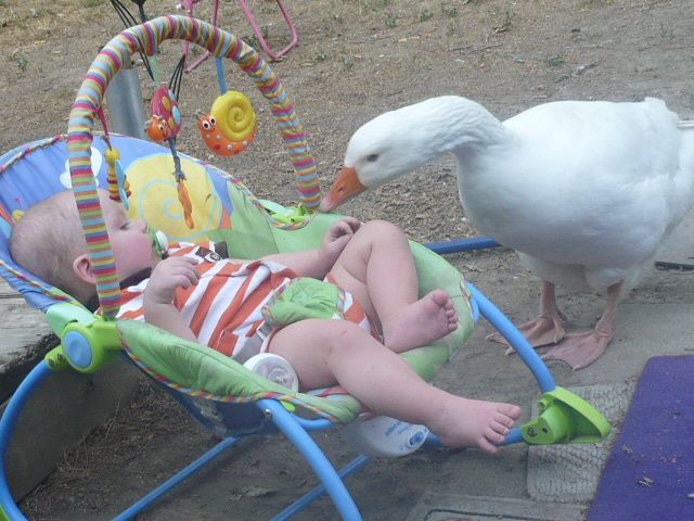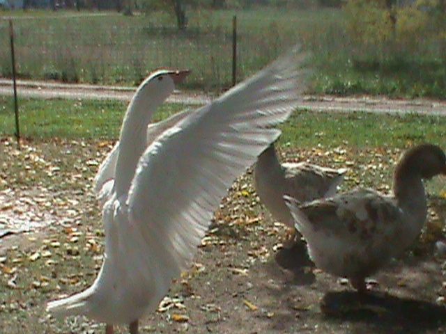 meat since its solid white and of good flesh but those of us that keep them for pets see something different. My Embden gander is 51/2 yrs old hatched here by a Muscovy duck he is just such a good all round member of this flock, this past summer did an awesome job of helping raise the Scovie ducklings that hatched here, we called him Papa Goose. he actually was more loving and caring than the mothers of the duckling. If you have Embdens and want to talk about them and of course pics well heres your chance. This is my guy.
