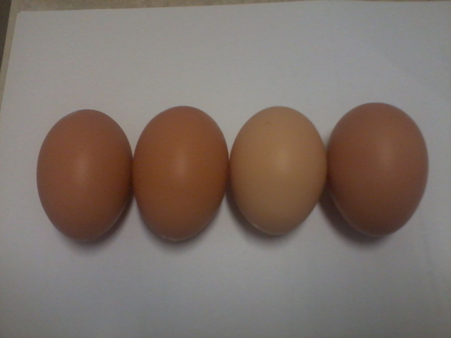 these eggs look like all the other eggs I get... like what I am saying is I match them up every day when I get eggs and I have what looks like 4 dif eggs... how ever I have 2 that look a lot alike but there is just a slight difference in the size shape and color... but it is so slight that I just don't know... one is like hardly a shade lighter hardly a bit smaller and just a bit more oval... LOL