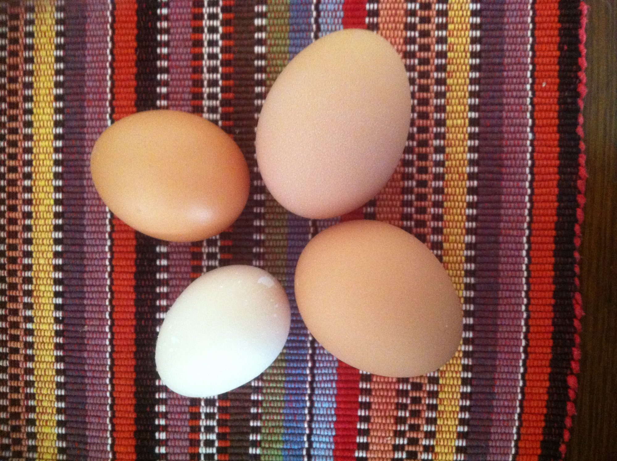 I know exactly who is laying what now. My RIR, Ponderosa lays the most often she gives 2 eggs in a 24 hour time frame she lays the fat brown eggs, Tender my mix breed lays the lighter colored fat eggs. My Barnivelder, Rotunda lays long skinny dark brown eggs. her eggs you can never tell the top from the bottom LOL I had seen Tender lay her egg before. then the other day i saw Rotunda lay an egg. The one I had thought was laying an egg ended up being a rooster and he was returned and I got a Dominique hen we named Ellanore. She hasn't started to lay yet. And my other hen is starting to look a bit roostery... she is like 13 weeks old... no comb development or wattles yet BUT it has pointy hackle feathers...