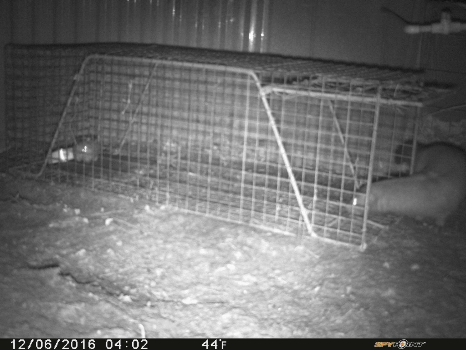 He DID come back at the same time at 4:00am, but no more. This photo shows how close I came to catching me. Still seems too big to be a weasel!