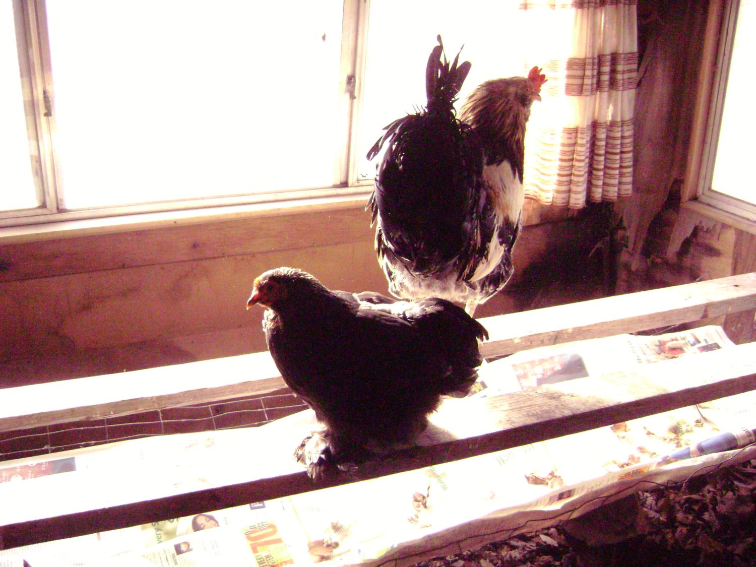 I have a camper coop, and i have set up a double roost by the back bay window area. At the top, up by the roof there are little crank windows that provide ventilation and keep the humidity down. I also put down deep bedding at the beginning of winter. I don't use heat, but the windows allow themselves to sun themselves, and the double perch system lets them pass each other without anyone having to jump down. It was very cozy during the day! An added bonus of the deep litter was that i could toss corn in there and they would dig around all day, which helped with the winter boredom.
