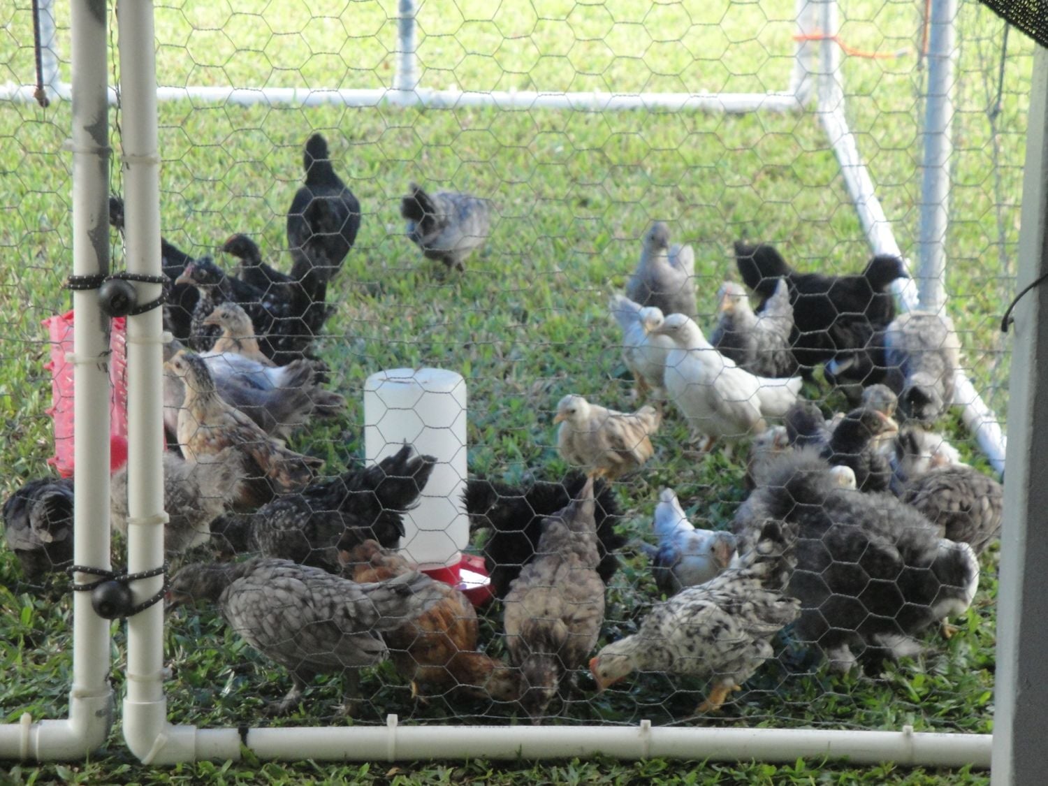 Watch chickens grow huge and have hubby adjust tiny coop