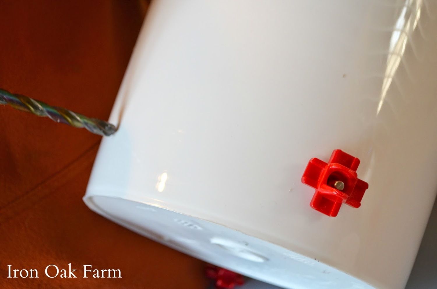 Be sure to use a 3/8" drill bit only....these water nipples are "self-tapping" and make a perfect water-tight seal. I have never had a single problem with them at all.