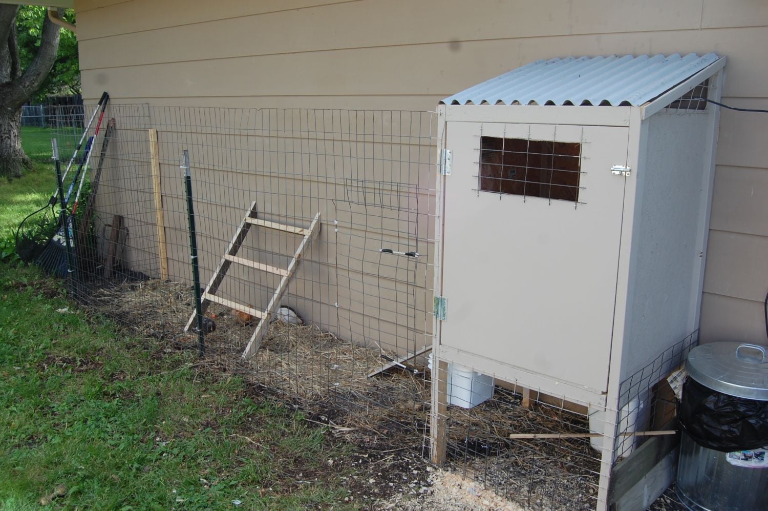 The good news is that by the looks of it, you have the skills needed to build a bigger one......you just need some decent plans and ideas on what to build. If you have 4 birds, you have some time........but not much.