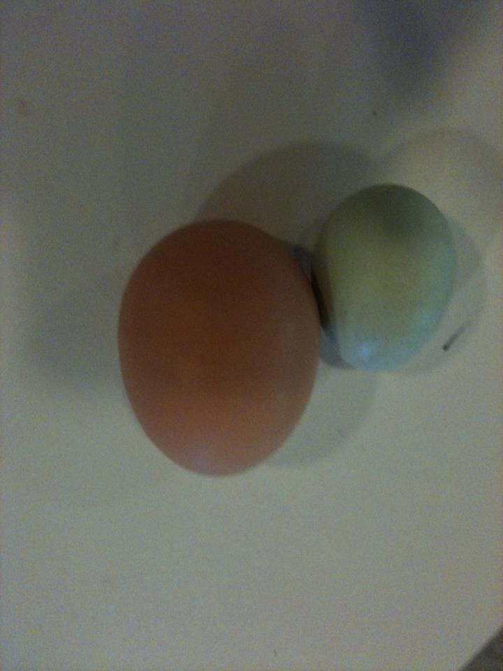 My leghorn finally laid today! We got to watch and everything. She was acting crazy and I knew it had to be today. I think it's a double yolker, it's HUGE. We got 3 from 4 layers.