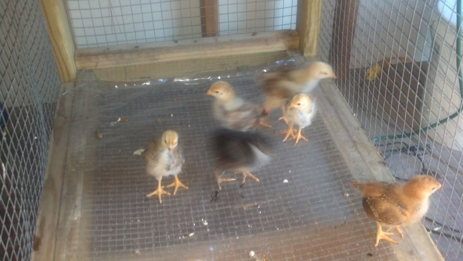 7 Hens, 5 Laying, 4 eggs today. (blue, grey, brown and white)