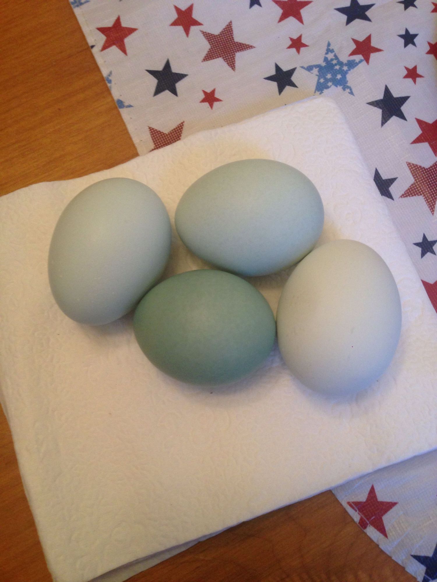 Thank you! The lighting was a little weird. It's hard to capture the blue sometimes it appears grey or greenish. I don't know why the super blue one is so dark. I've never had one that color before! They are usually all the pale blue color. Sometimes white -ish this pic is the same eggs, same day.