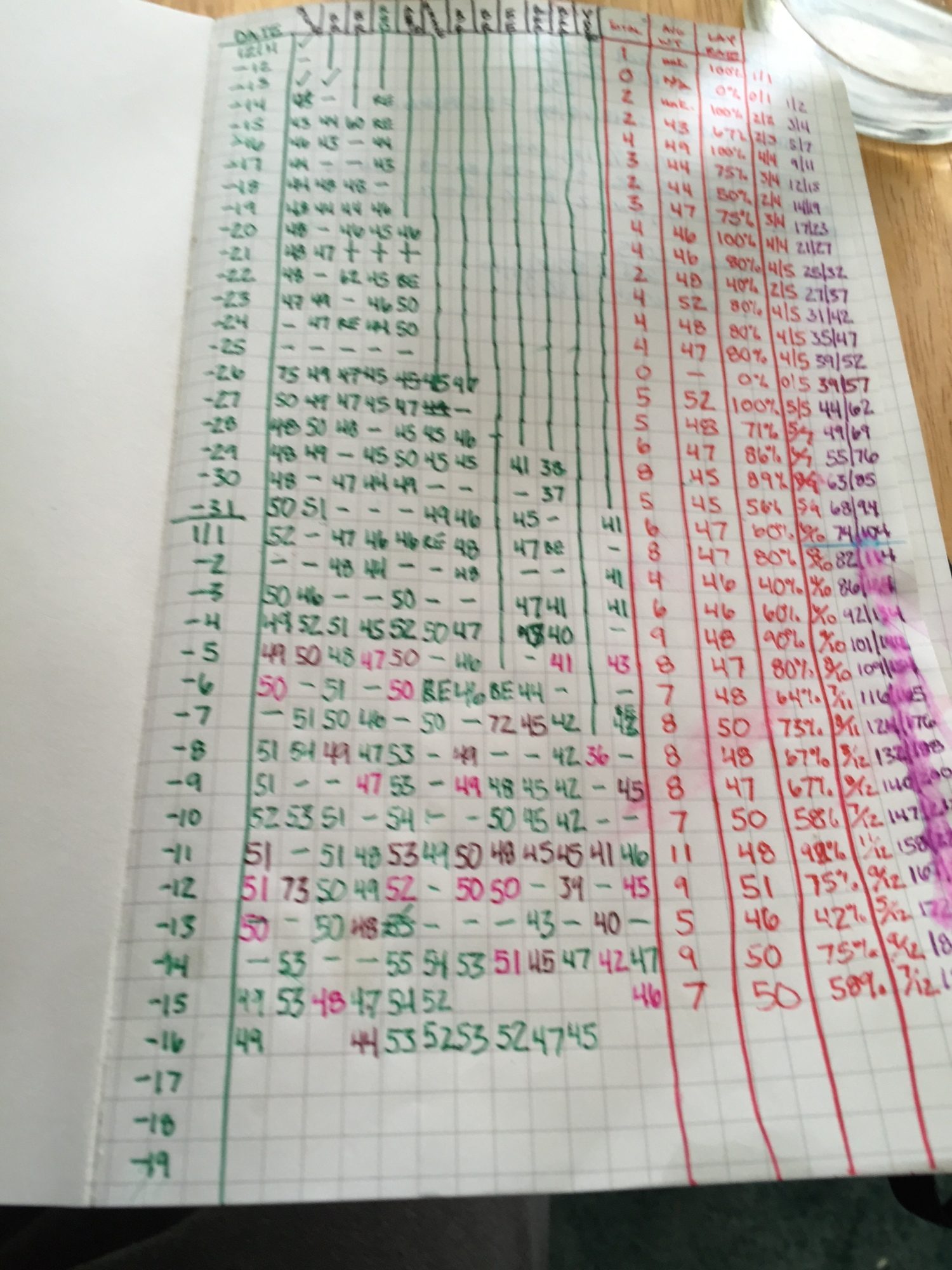 My wife's parents got me moleskine notebooks for Christmas because I love graph paper and over analysis of things. It gets confusing because some chickens have names, some don't and I can never be totally sure who laid what when it comes to the breeds I have multiples of. But it does look sufficiently nerdy! (I quickly moved to writing a weight for the egg instead of just a check and I recently added a color code for the time of day it was laid... YES, I spend too much time on this, lol)