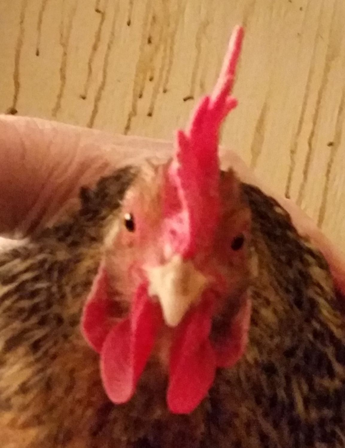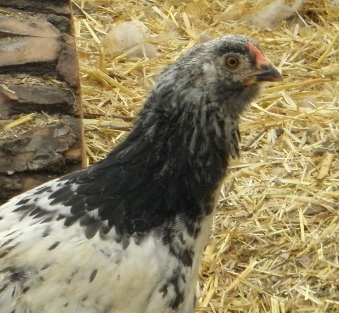 Oh goodness, is this Scout? He looked very rooish to me as well. I was also looking at the rust/yellow, especially on the wings. If memory serves me right, yellow/rust on the wings is a roo indicator. What is his breed again? And he is awfully pretty as well, way to colorful for a pullet. But won't we laugh he "he" lays an egg??????Yup...and those once beautiful, round looking neck feathers are also suspiciously pointy now. There's also a bit of rusty brown coming out on the shoulders and back. Scout, you just never fail to find a way to amuse me. Sorry the pics are blurry, but he hates me and spends every minute I'm out there trying to find how to get away from me. Hard to photograph a moving,head bobbing target.