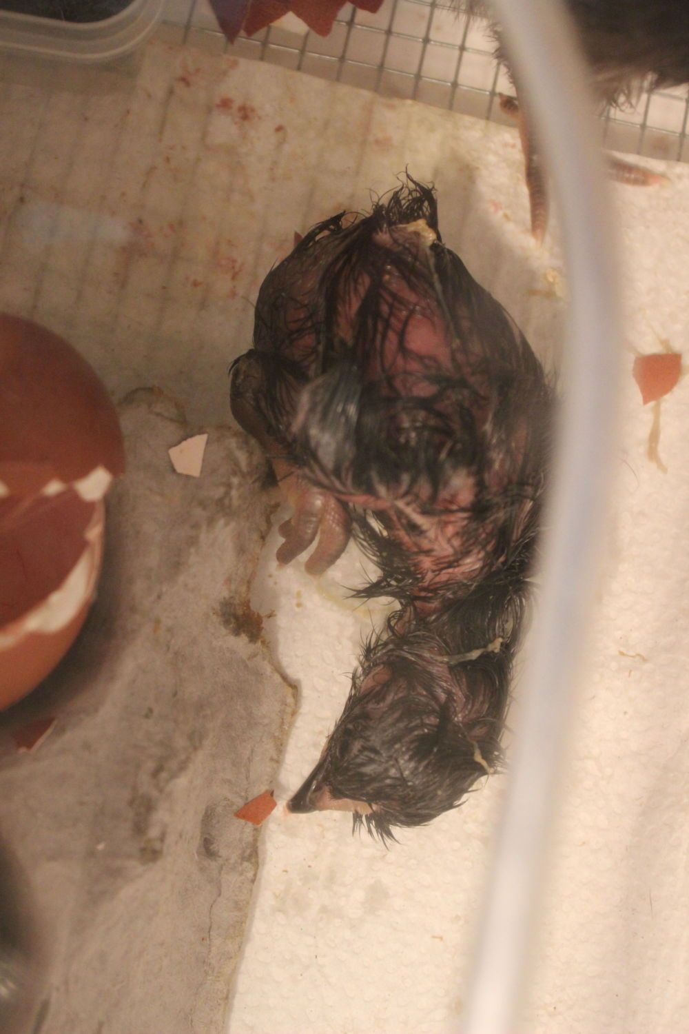 Well, I have 3 that have hatched so far. Today is day 21 so, I think there will be more hatched when I get home from work! Minnehaha, you can see how dark the eggs are that they are hatching from.