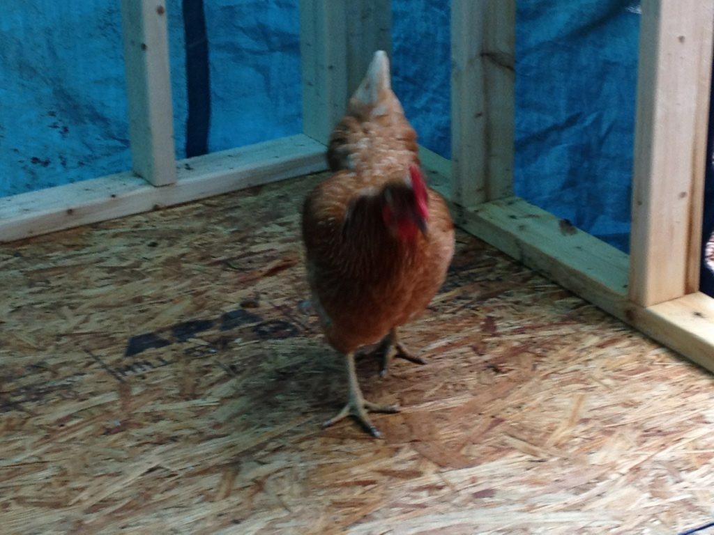 The girls stayed close to the coop, but Lala did venture out to the new coop to inspect the progress!
