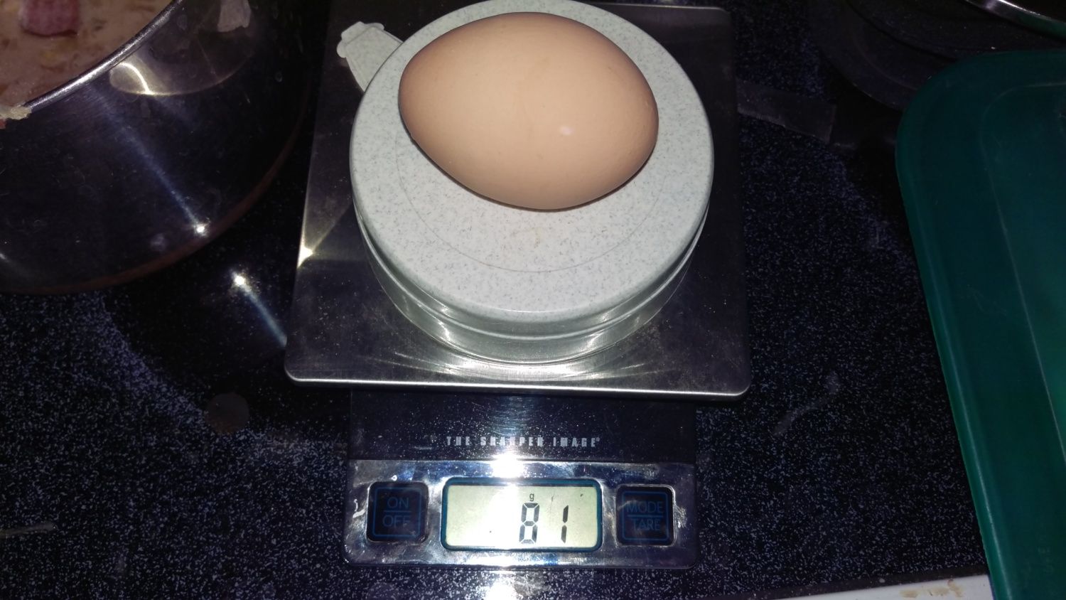 I just started weighing eggs the first of the month and one of the BRs has been laying bigger and bigger eggs. I wouldn't consider any of them to be particularly large birds so I am a bit surprised to see her eggs to continue to outsize everyone else in the flock. The next closest are the Leghorns whose size seems to have leveled out at 63-65 grams.