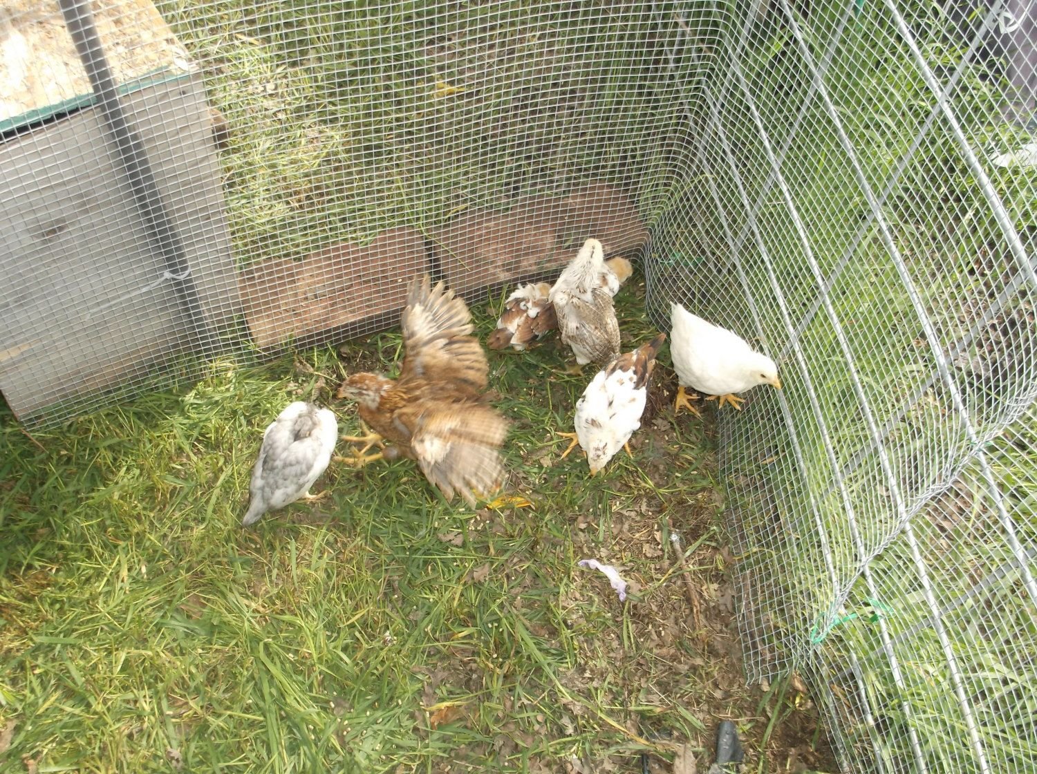 His new chicks that he believes laid all the eggs in the yard