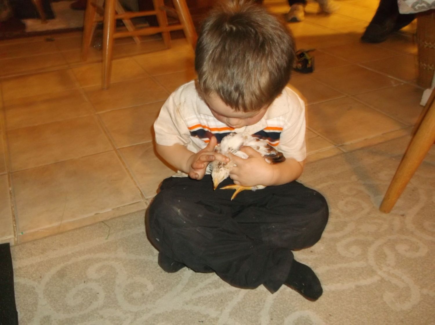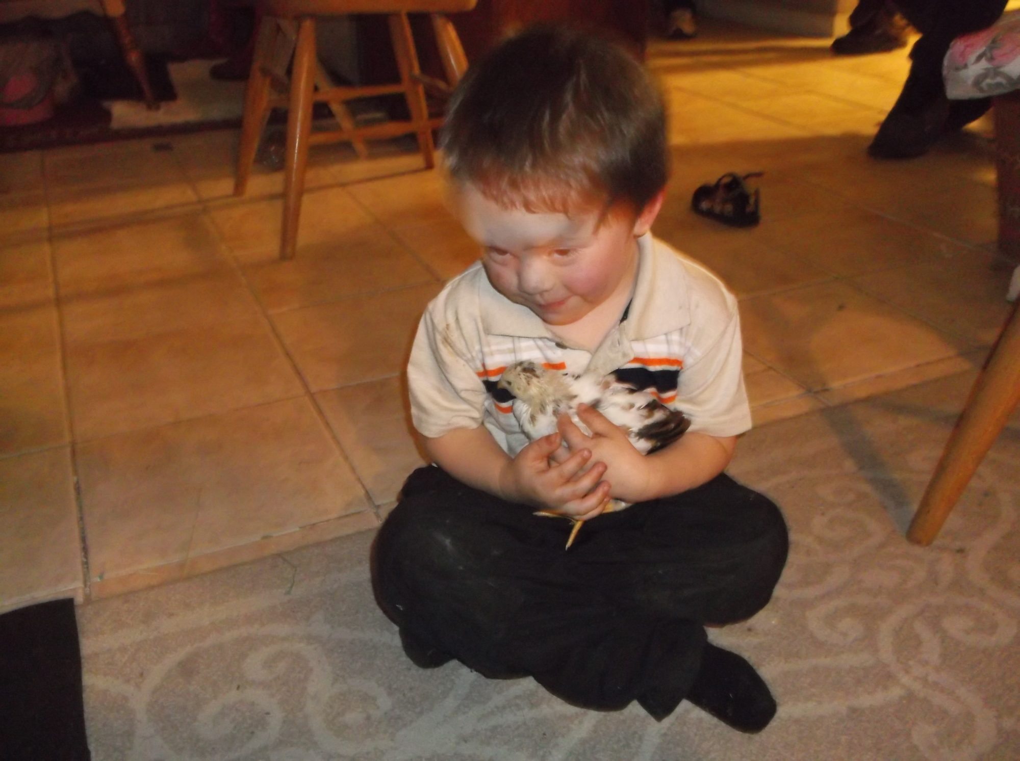 Here little Even gets to feed his new flock