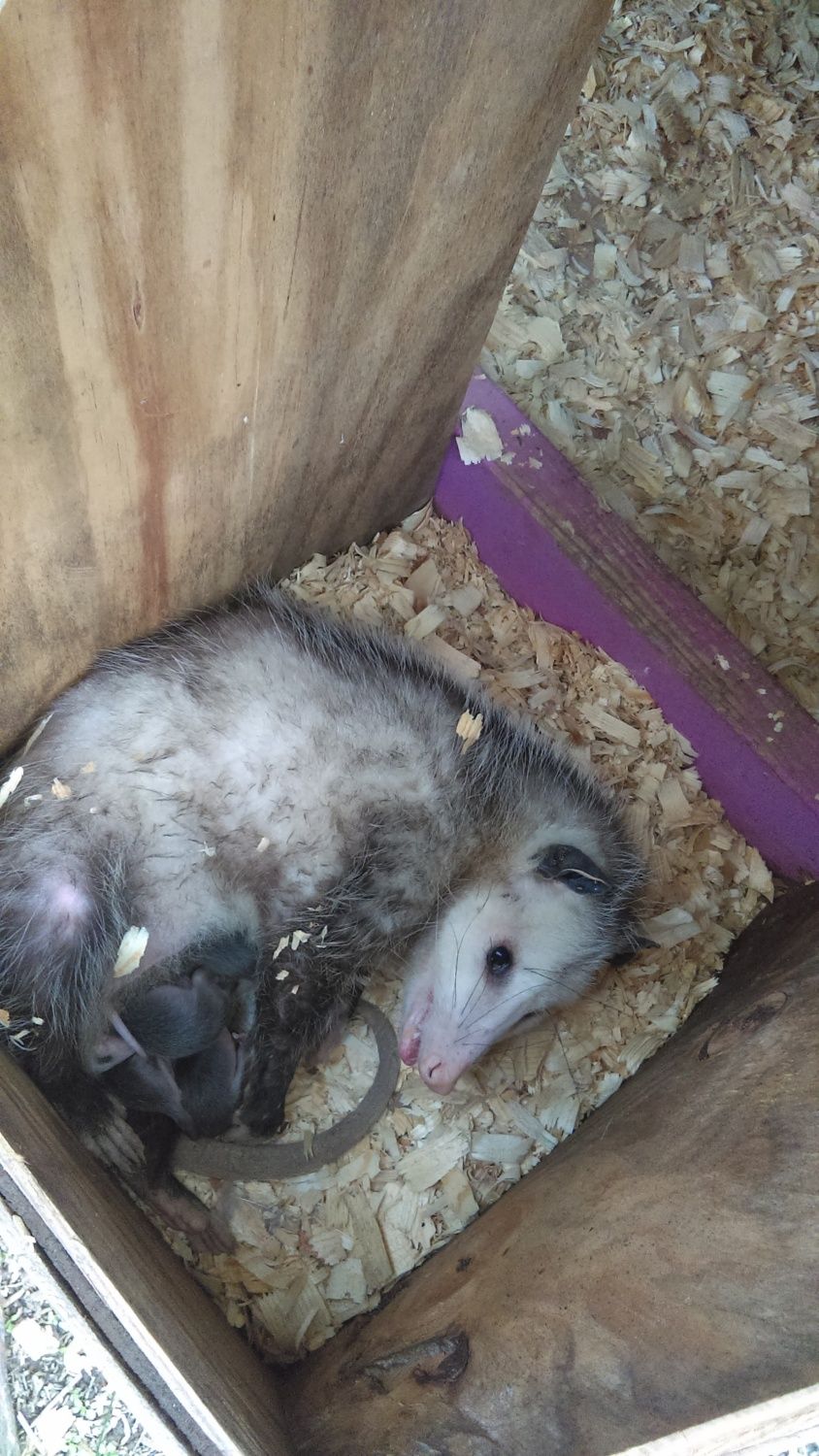 Those definitely look like babies! Okay I know we don't want them in our coops and it must've been a big startle but at least she knows what a nest box is for! Lol my guess is she decided it was safe and warm. I have to say we would kill a possum of we found it in there but with her having babies I couldn't BC they would die more importantly they would suffer if you killed her your have to kill them too. In the photo she also looks more surprised to me than aggressive which is an indication that she doesn't mean much harm I don't think. We had a possum one winter when I was growing up that we found sleeping with the barn cats a couple of times and the cats didn't care. It was cold and they had wooden boxes of straw and they were all warmer sleeping together. After it warmed up it left. I swear the thing was hibernating in the box lol. Okay so I think I would put hardware cloth over the opening on the inside careful you don't want to make her mad and then leave the lid up but make sure to cover(with more hardware cloth maybe) the other nests so she can't get in there. Exposed to the elements I think she should probably change her mind and move her babies unless you just want to trap or kill them all.