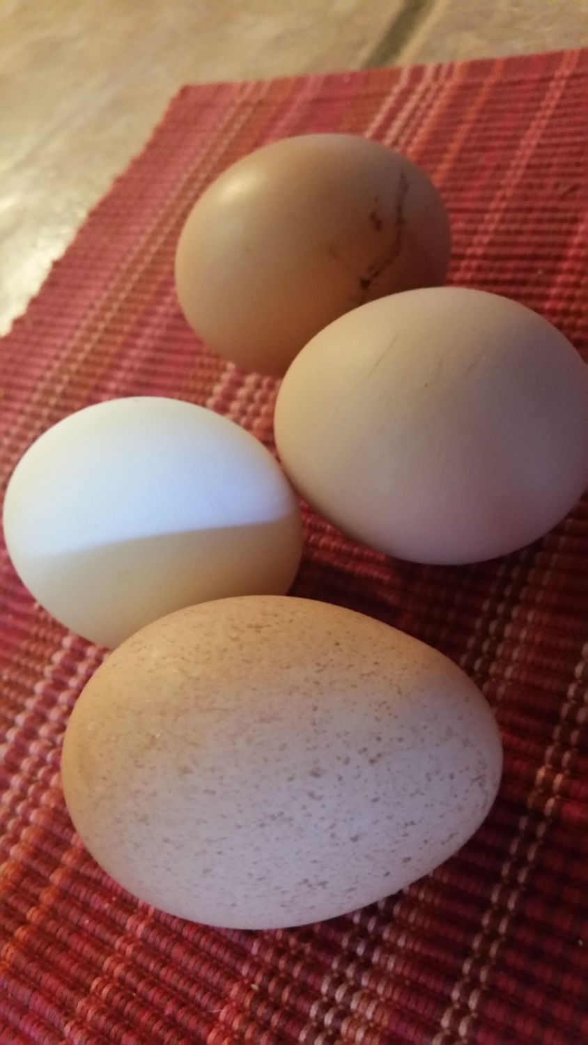 4 today, wahoo! I believe Cotton, Pearl, Penny and Patty. I think that either Penny or Patty has gradually been laying a lighter colored egg. I thought one might have been from Rosie or Worse, but now I don't think so. Penny is the lighter color of the two, maybe her eggs are lighter as well.