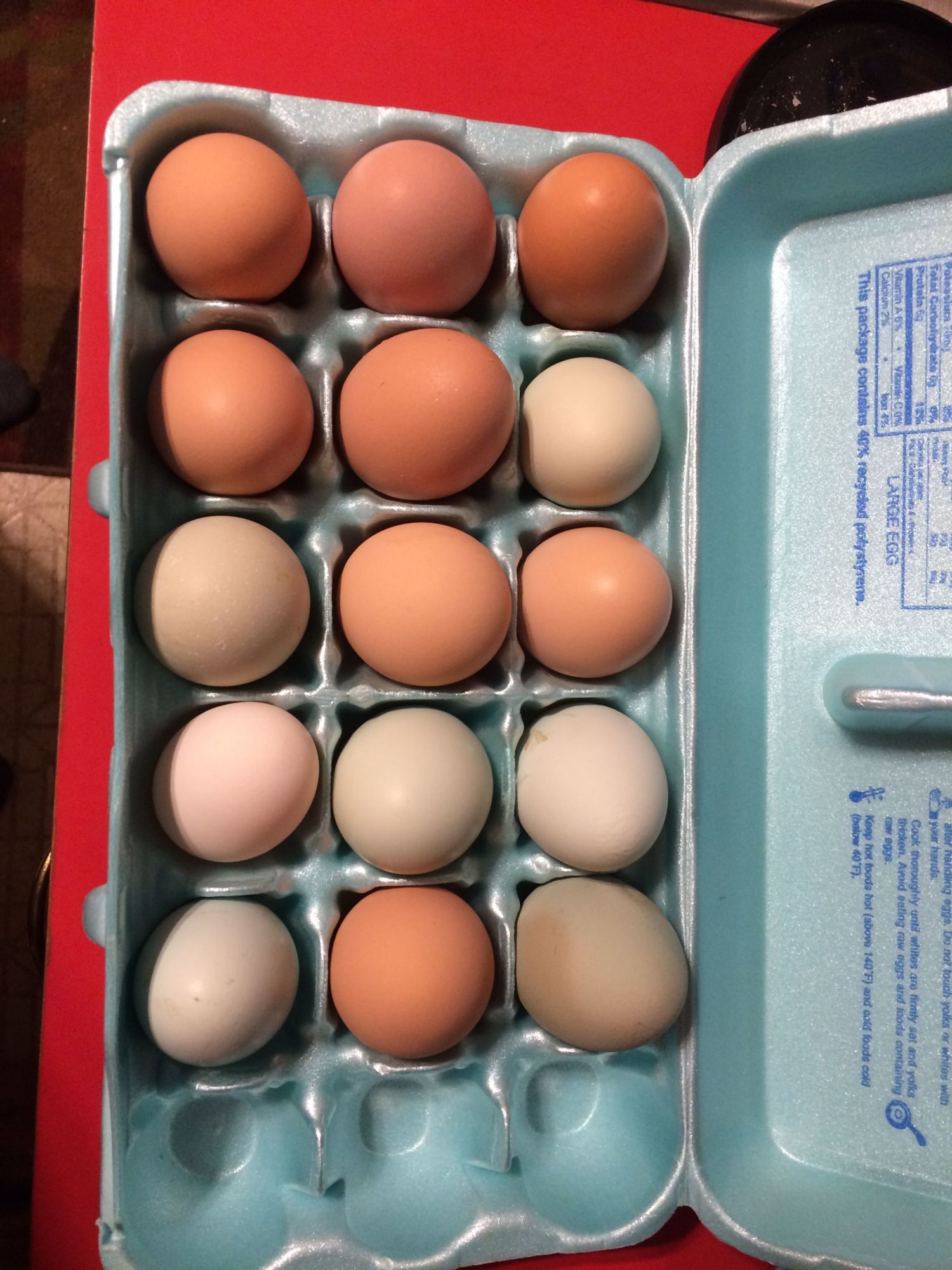 I got 6 eggs today I have 8 hens. My Easter Egger laid her first green egg today. I've been waiting 8 months for my Easter Eggers to lay. I'm hoping the other 2 girls will lay theirs soon. I'm a proud mom!