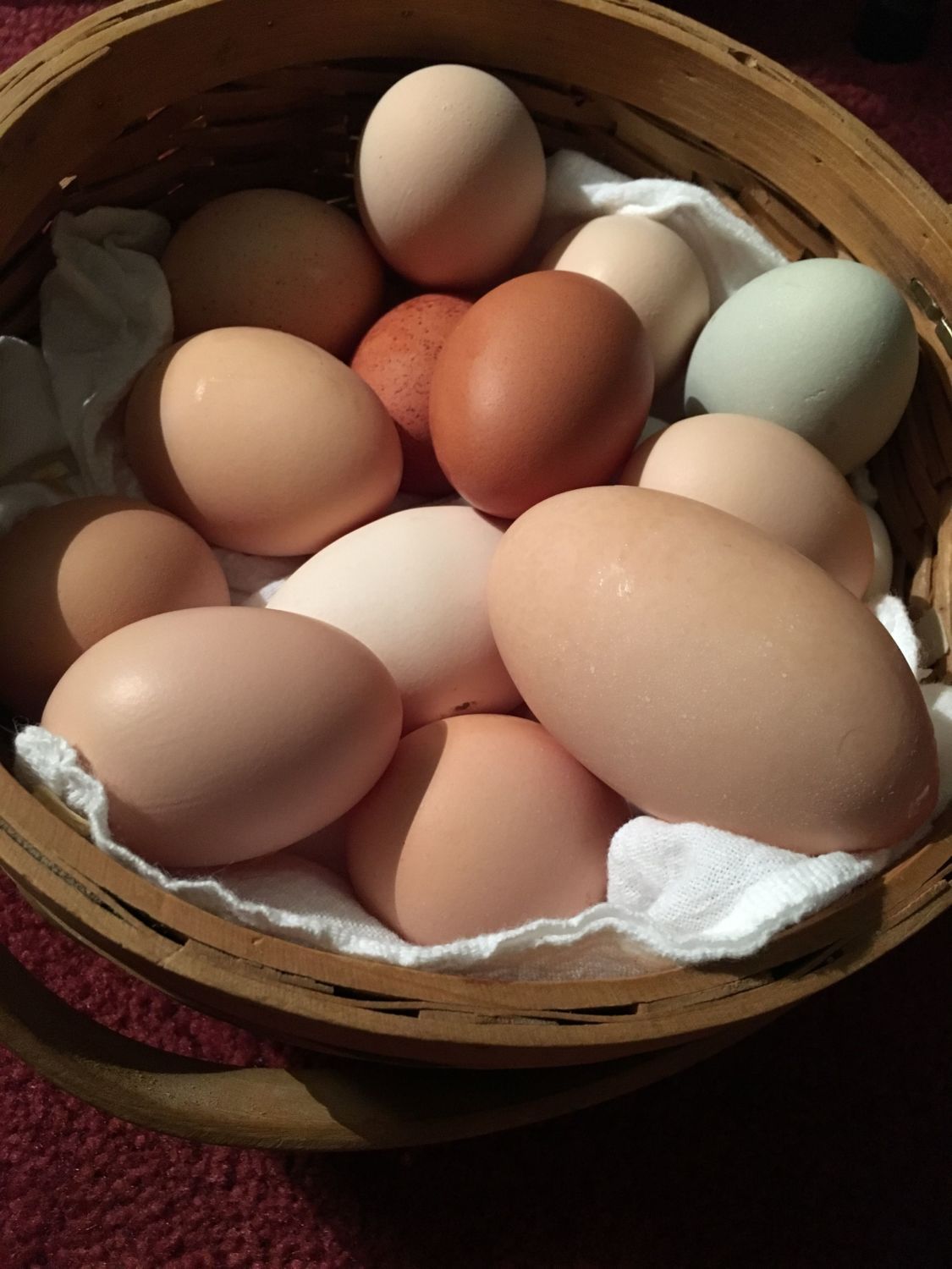 21 eggs from 24 hens. 2 were soft shelled ( 1 of which may have been from a previous day & I just overlooked it)