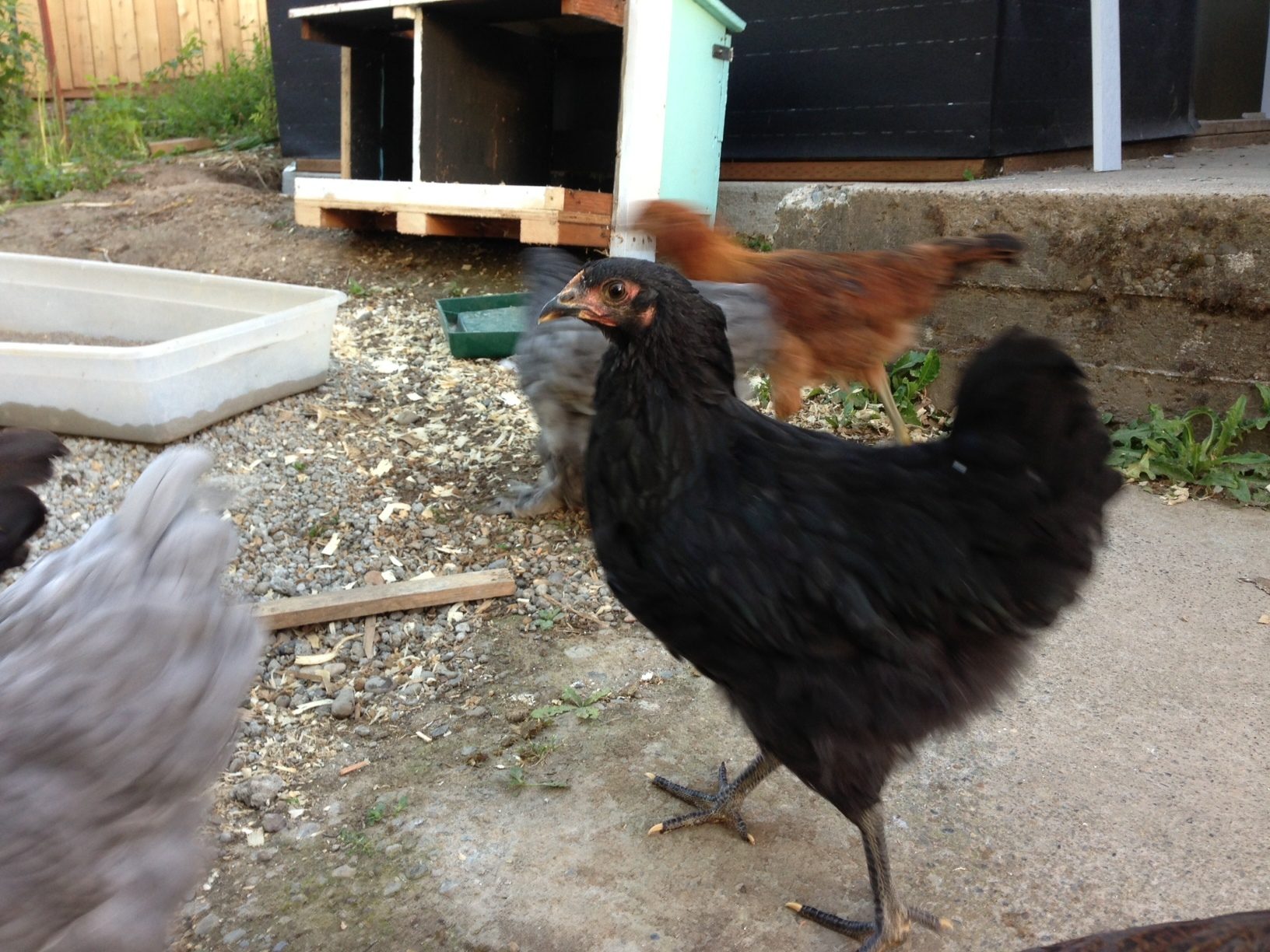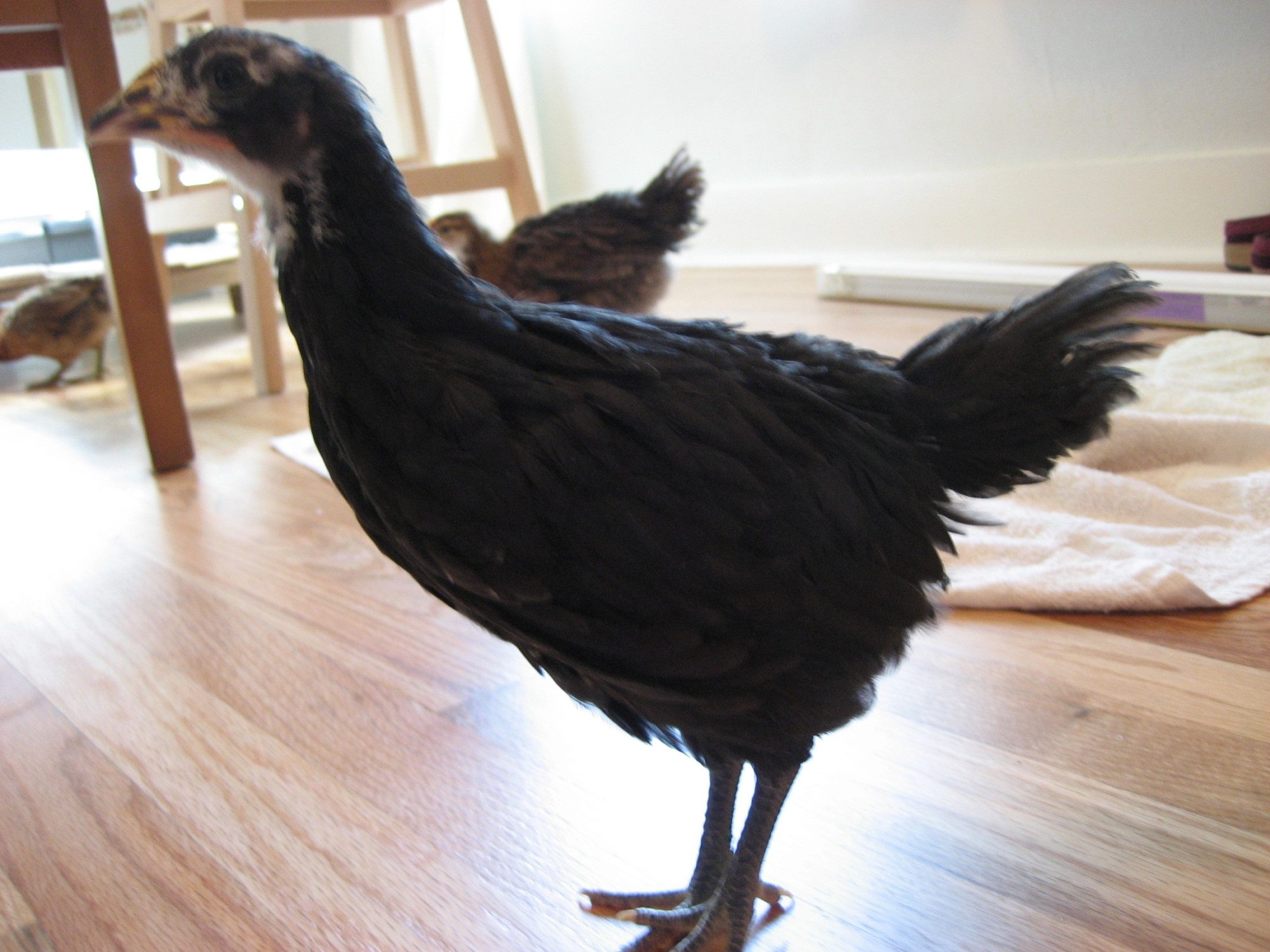 #5 Just under 6 weeks, Black Australorp. The tail looks like a roo to me, but otherwise seems to be a girl?