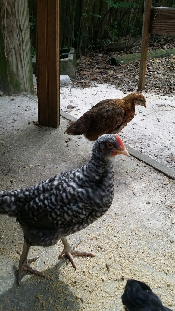 I bought 10 "hens" from 2 local feed & seeds. 5 different breeds, 2 each breed. Everything was going great until age of 6 weeks, and one of my Ameracaunas starts acting weird, running up to one of my Marans, flaring out her neck feathers and pecking her on the head. Well, turns out the Ameracauna is a roo! He is a pretty thing too! Dark reddish brown feathers mixed in with the white and black, gorgeous George I call him now. THEN, last week I noticed the Maran that the roo was chasing after, she is also a roo! He has lots of very white spots on black and is sporting a nice comb and starting to grow wattles, is that the term? So the two roos are trying to determine who will be king roo, I guess. I have also noticed, at night in their coop, each of the roos has 4 hens each in their chosen spots in the coop. Even out in their run, they seem to segregate themselves into the two groups. Since their run is 20 feet wide by 60 feet long, I am thinking that should be enough room for everyone to get along, right? I mean, I know there will be pecking and some mild fighting to establish dominance and all that, but I have already had to pull GGeorge off one hen. I had a come to Jesus meeting with him in the yard and he calmed down the rest of the day. He keeps his eye on me when I am in their run and keeps his distance. After all this, here is my question....If either of the roos gets too mean, or causes too much ruckus, and I do not want to kill them and eat them, is there someone out there in the Florida Panhandle area that might want a