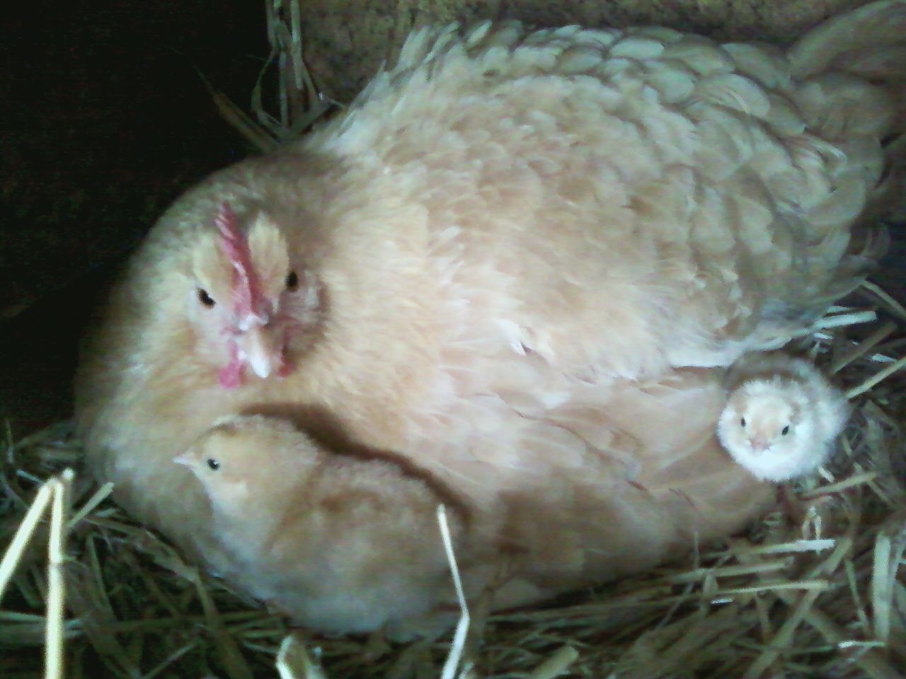 Funny chickens - two of them went broody at the same time and I split the eggs between them. One mother was so successful she even stole two away from the other hen. The other hen was left with one and unfortunately it died at 2 days - looked like it had giant pasty butt, but that wasn't it - almost like there was still yolk attached and the rear hadn't completely formed. Sad. It's mama was incredibly angry for 3 days anytime she saw her sister and babies. I've never seen such an angry hen. Eventually she got over it - I isolated her for those 3 days. I'll try to make it up to her this spring.