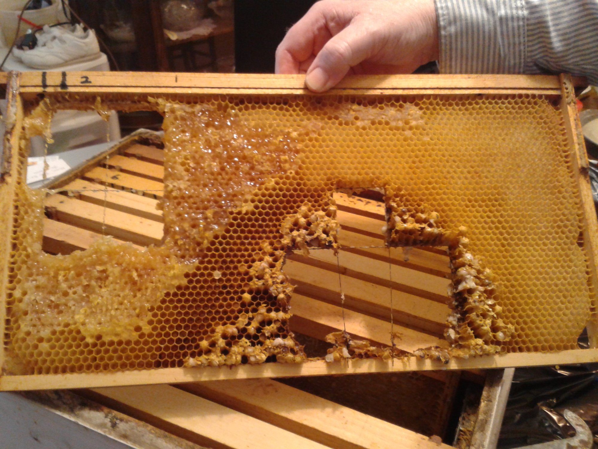 Image of amount in comb honey and brood used. Honey was the top corner, brood in the bottom.