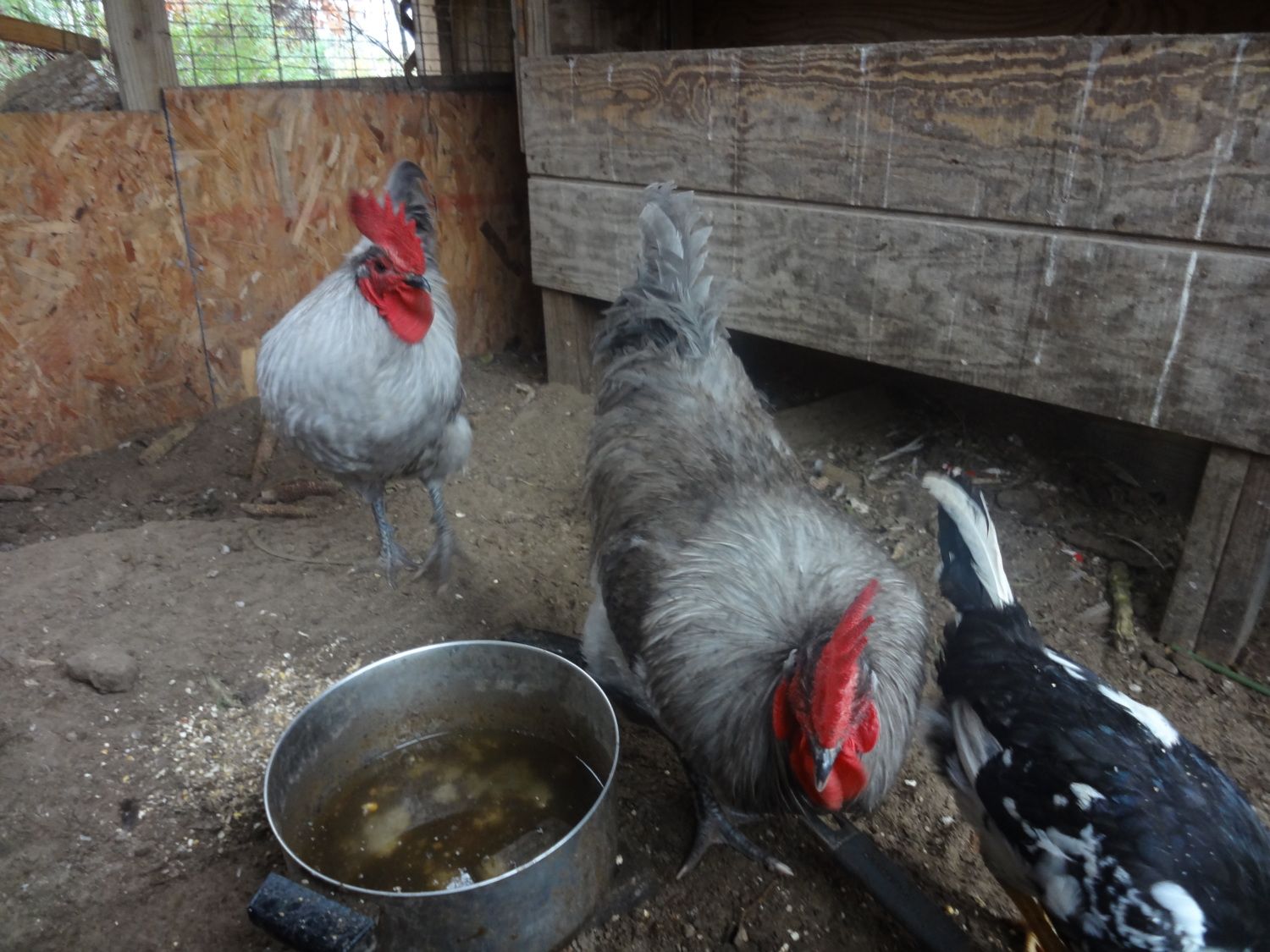 2 ancona hens and a rooster. i think they are close to 6 months but not exactly sure.