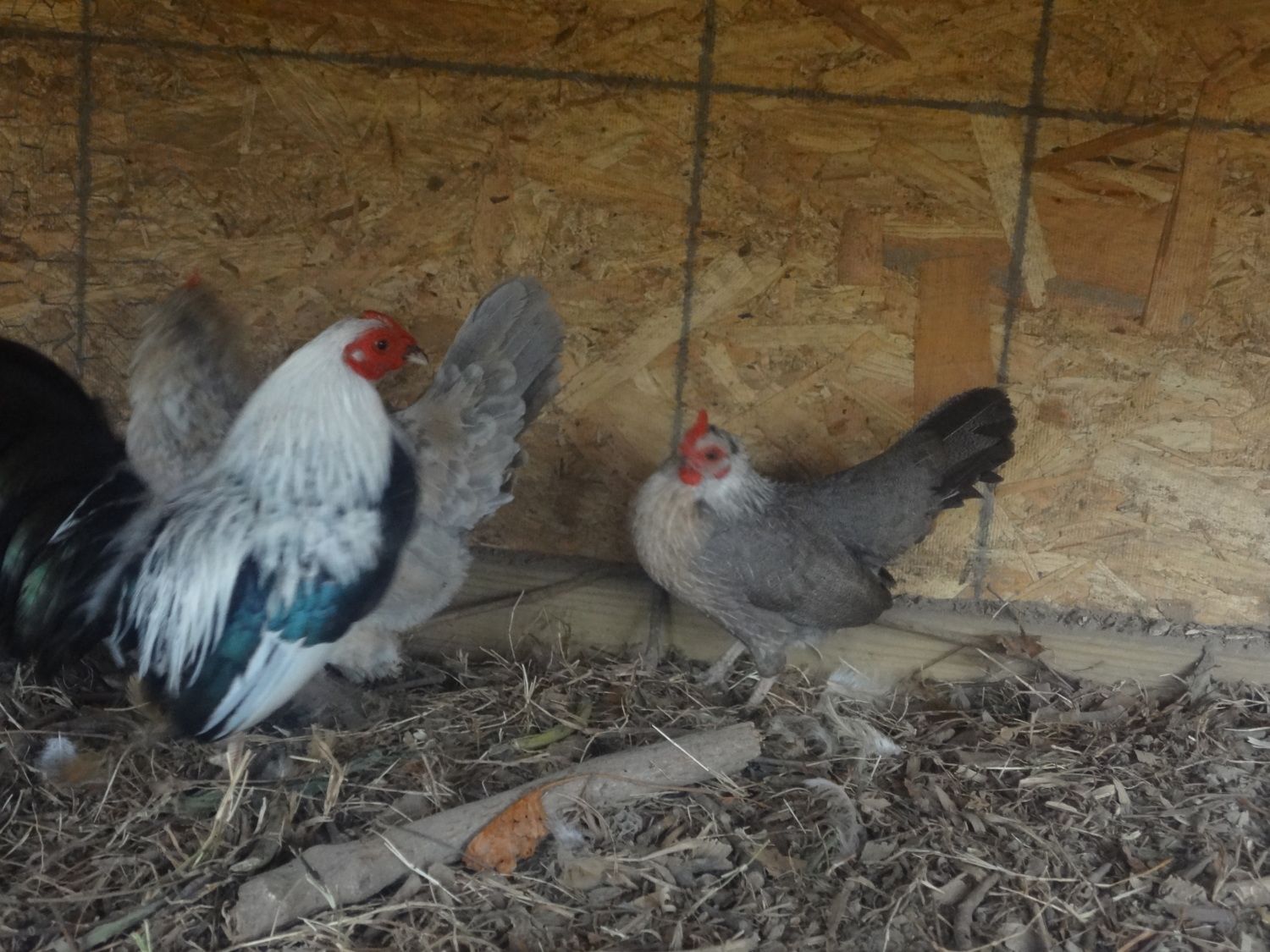 A Silverduckwing OEG bantam pair. im not sure of the age but they are about a year old.