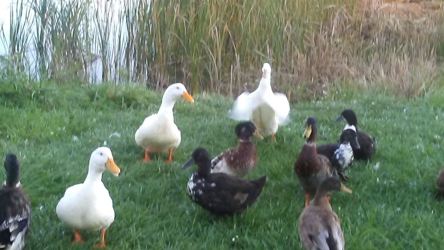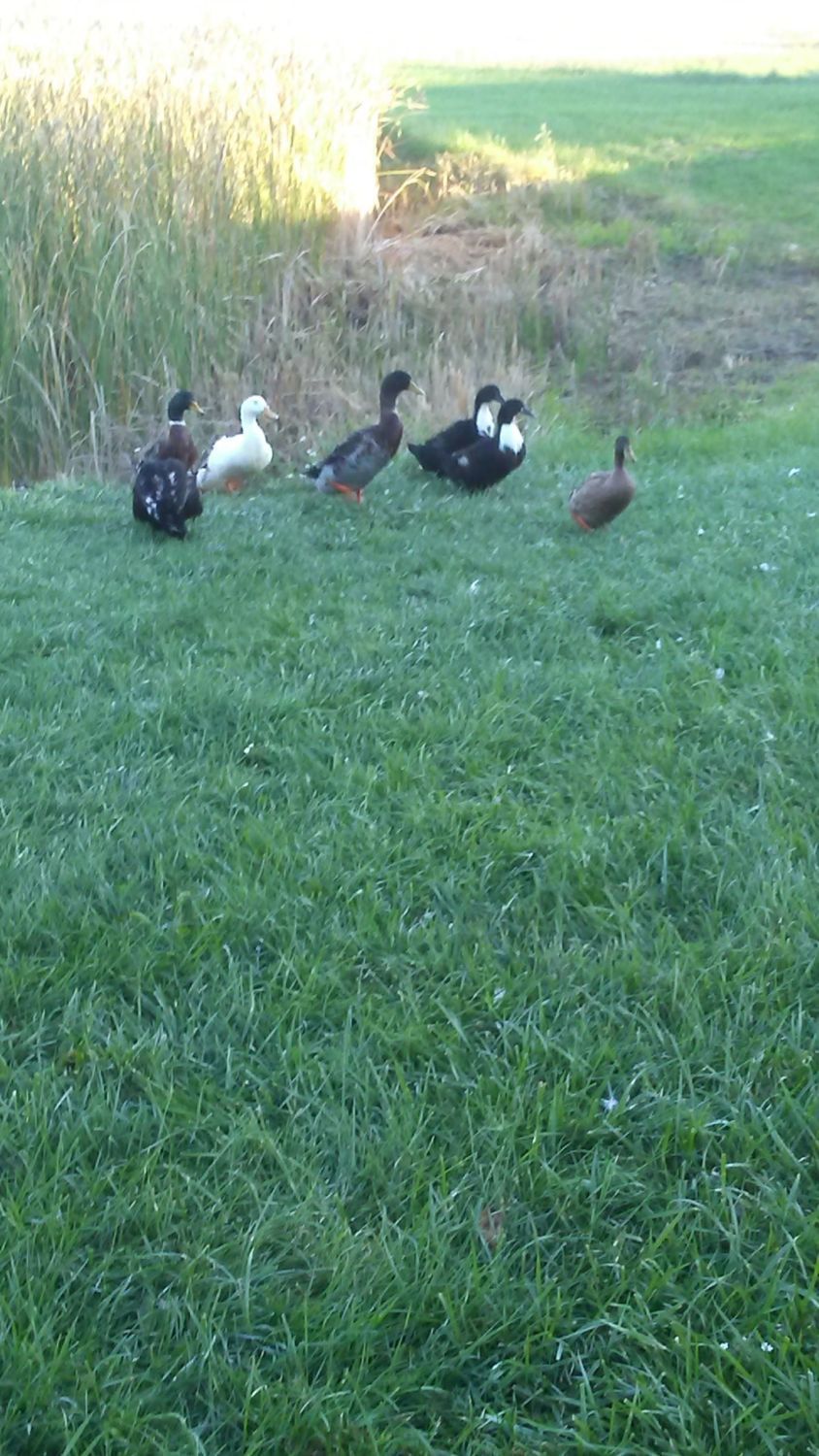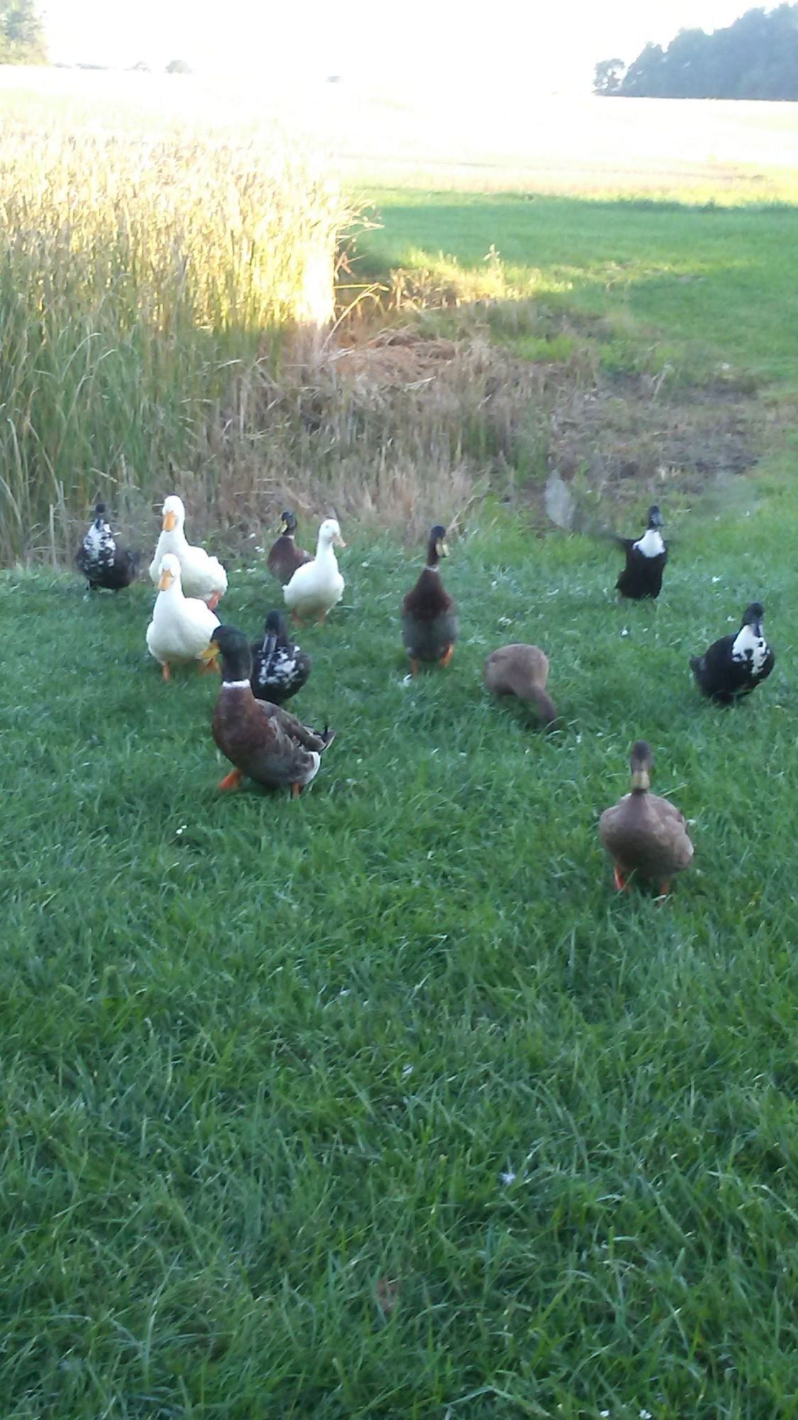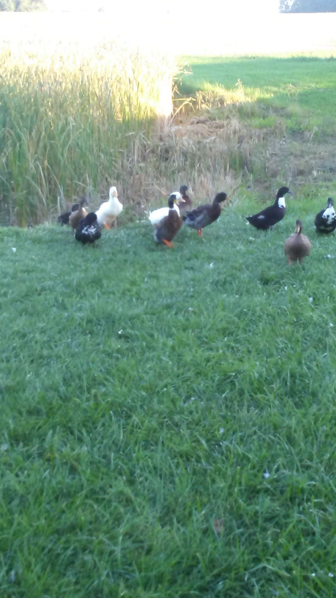 Too funnyI think most of us just give them all they want, or do a unlimited meal in the morning and evening. Either way your ducks look happy and healthy, not at all too fat.![]()