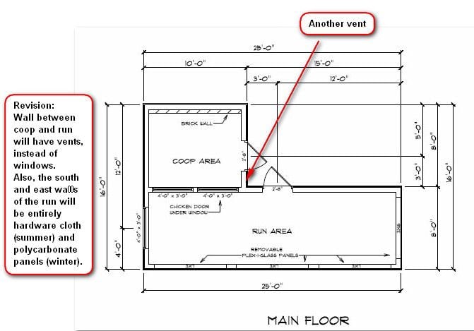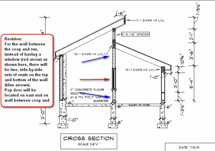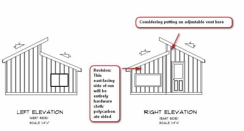 Further information is that we're planning a drop down hood over the roost made of some material such as insulated tarp that will pull up to the ceiling during the days and warm periods. Clerestory windows will have framed rigid insulation covers that will also hinge up to ceiling during non-use. The last vent will be at the highest point in the coop-above the hooded area of the roost and hopefully let out any warm, moist air but not create any drafts to the chickens under the hood. Hoping to never add any heat in the coop.