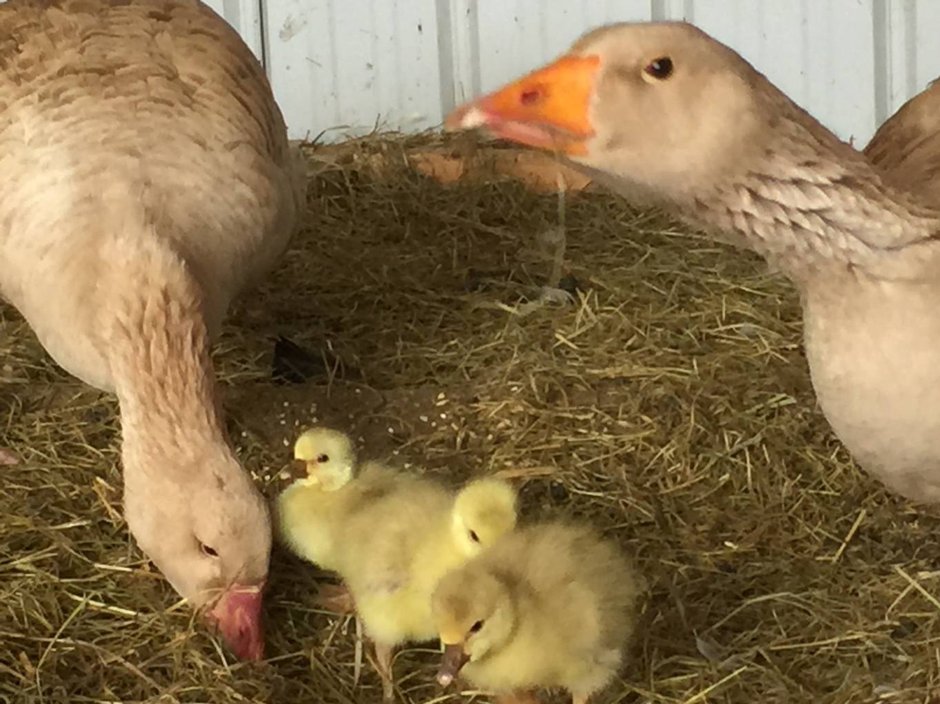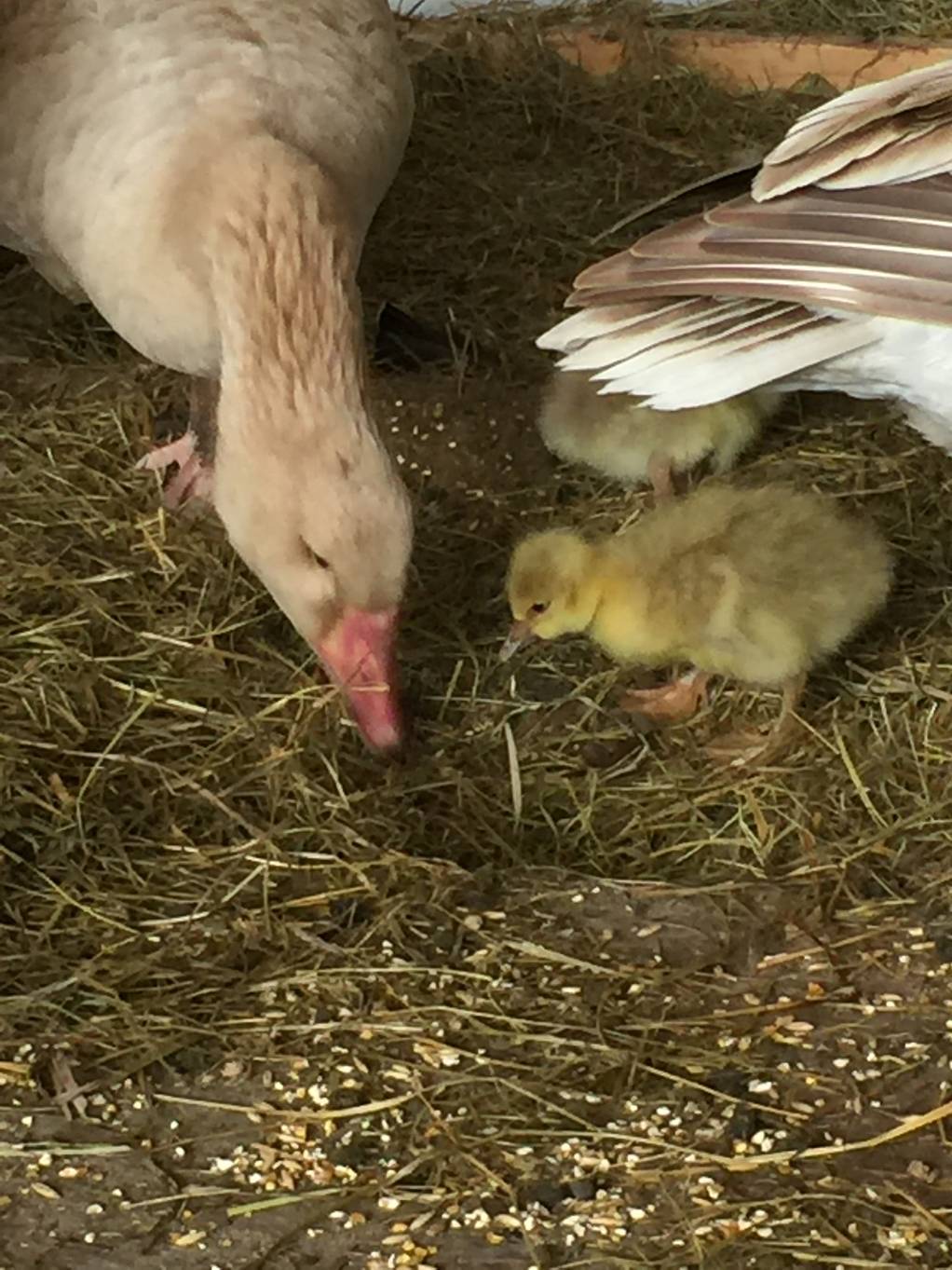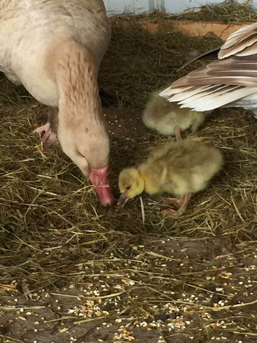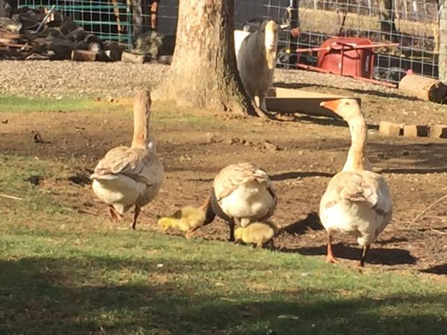 WOW!! Y'all are the very observant bunch!! YES!! The American Buff are tufted, and at least one of the goslings looks like the tufted crown got passed along to them...!!