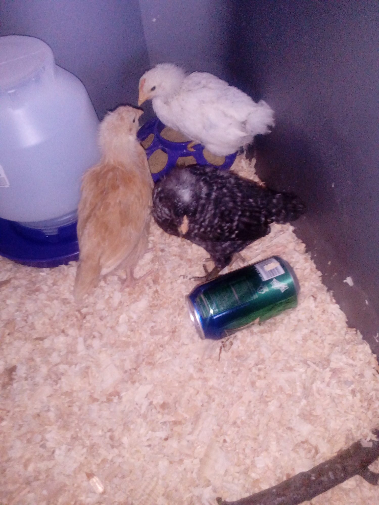 I am attaching pics of my new chicks, said to be hatched 3/8 and are 24 days old today - a little over 3 weeks. I don't know... they are large to me compared to pics of other 3 week old chicks and I am wondering if this was a mistaken date. I got them from a local feed store who sources from good breeders. I've put a soda can in the brooder for scale. Do they look older to you? The Barred Rock flew out of the brooder today and was standing on the side! They have lots of feathers too. They almost look like 5 week olds to me! I want to transition them outside sooner rather than later, and the feed store pulled the records and said they came in on 3/10 and should have been hatched only a couple days earlier. Keywords are "should have been" born only a couple days earlier - but what if they weren't and were a week old already when they got them?