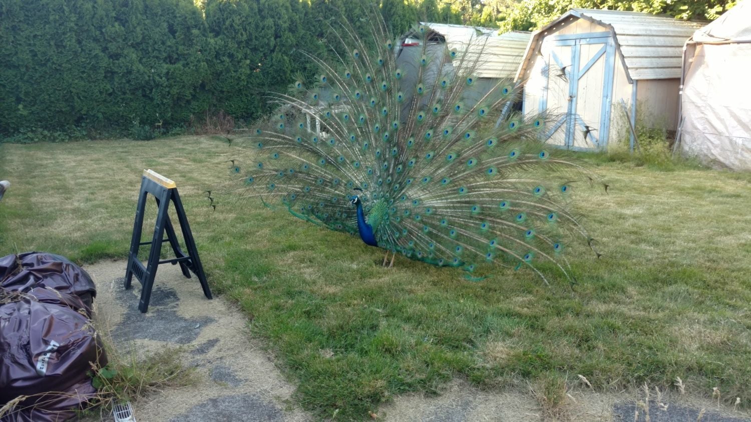 We moved into our current neighborhood 5 years ago in June - this lovely male has been around since then, he comes in our back yard and will sometimes display for us.
