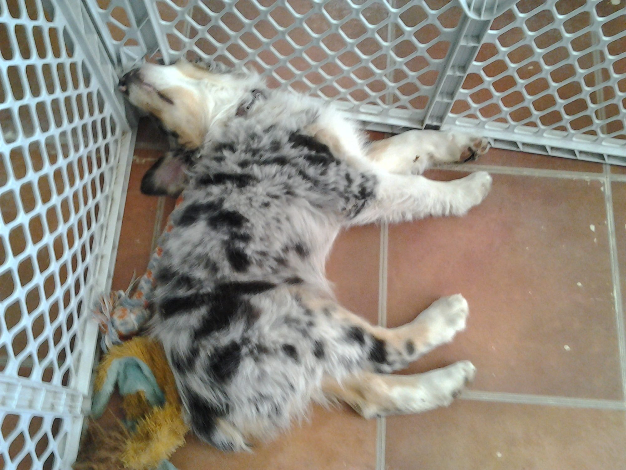 Another thing, if you haven't already found out, is that Aussies are very active dogs- they really need a large yard to be able to run off that energy or some seriously dedicated owners to take them out for a good run/walk/frisbee/ball toss twice a day. They're herding dogs; hence the reason for all that energy- also, I believe, why they're so smart! When we went on vacation once and had to put our first guy in the kennel, the folks taking care of him said he'd figured out how to open it and get out, plus, he was able to unlock our sliding doors as well.