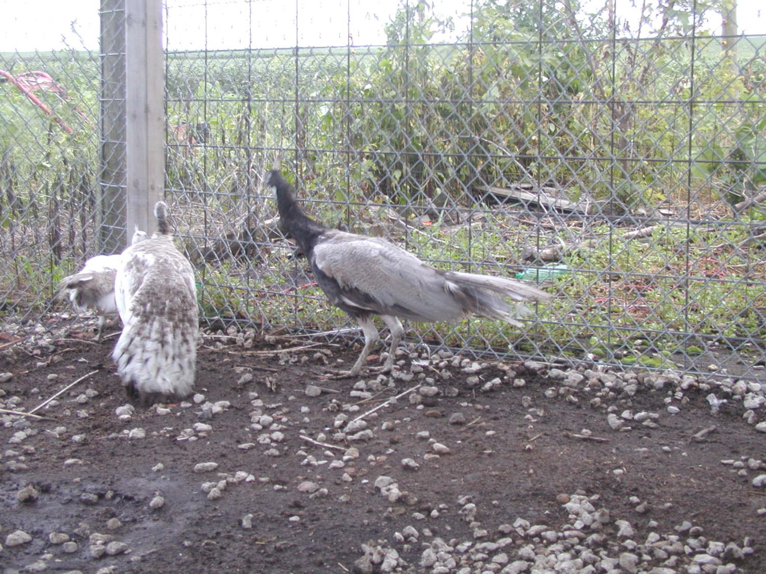 I have the white eyed charcoal and the split to charcoal hen but I never got the answer as to what other white genes the hen carried cause Deerman passed away. These 2 were in a pen by themselves and the eggs were marked with a "C" before removing from the pen. Deerman told me not to sell the chicks from last year so I could see what they turned out to be. He was not surprised at what was hatched so I am assuming he might've expecting something like that cause all he said was he never bred those two together but wondered what would hatch. That is when I replied "Is there white in the hen or more white in the peacock?" cause I did not know where the pure white was coming from. He said the charcoal did have silver pied in him and he will check his records for the hen as he thought she had white in her as well. Also added that the charcoal male didn't show any white eyes til he grew in his tail in 2010. This charcoal male I believe is about 6-7 years old cause he was around 5 when I got him from Deerman and this is my second season with him. I hatched a couple eggs this year and sold the rest of the eggs. The ones that hatched were 2 pieds and an IB with white flights. I also broke open the last 3 eggs that did not hatch and there was 1 pied, 1 white and an IB colored one. The lady who bought one set of 4 eggs did tell me she hatched a pied and the other 3 eggs were a brown chick and she said a white/yellow color chick, the 4th egg did not develope. The guy who bought the other eggs said he hatched a brown and white chick but the bird didn't make it and the rest did not hatch due to him going away for work and no one watching the eggs and the incubator ran dry for a couple days. I try to keep good records LOL.