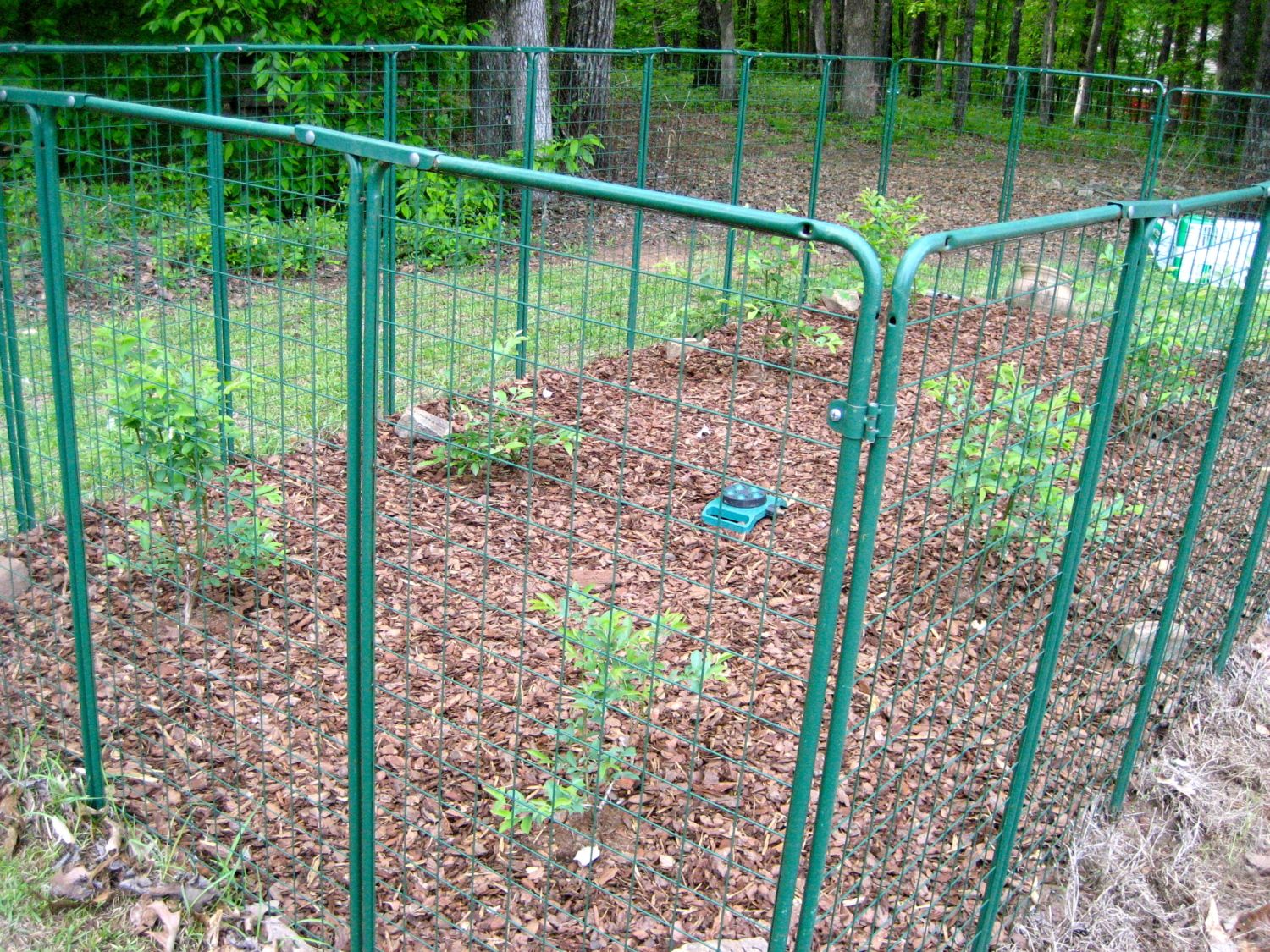 These are planted too close for the long run, but read that it would be ok to plant closer in the beginning and plan to move the Rabbiteye's in about 5 years. Hope that's ok..for now trying to get them started without deer eating them all! And will expend the fenced area in the future.