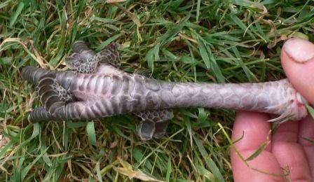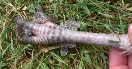The following pullet was E based with dark shanks, the dark epidermis was removed revealing a lighter tone dermis, she was Id/-, but wildtype e+,eb and eWh birds have clear colored epidermis and no need to remove the epidermis, just on ER and Extended black ones.Interesting tidbit and thanks for the info.