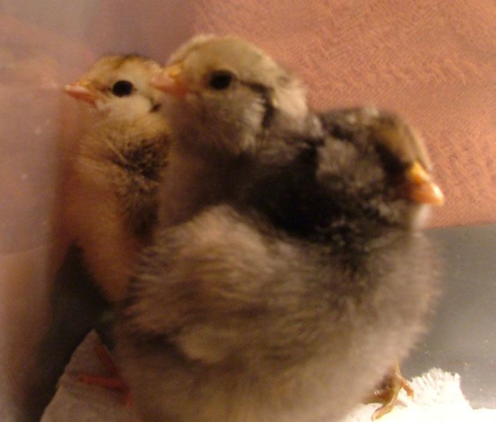 My first batch this year were a mixed batch from my Buckeye, Ameracauna, Maran flock. These three are Americauna mutts. I'm putting my Buckeyes in the breeding pen this week!