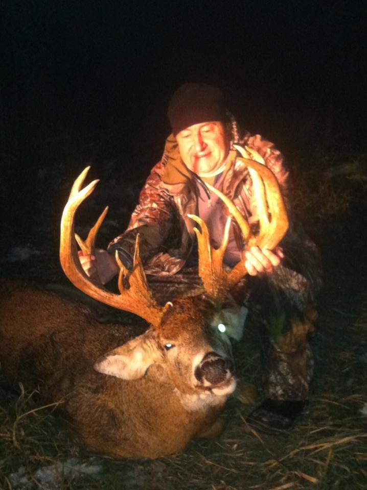 Anyways here is the photo. He could hardly put his hand around the base of the antlers.